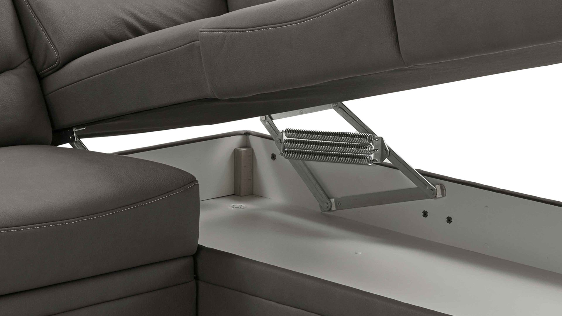 Bei der Aufklappfunktion handelt es sich um einen praktischen Funktions-Mehrpreis für die Kombielemente aus dem Modulmaster-Polsterprogramm MM-PP1133. Der manuell aufklappbare Stauraum ist innen weiß beschichtet und belüftet. Er eignet sich zum Verstauen verschiedener Wohntextilien, aber auch zur Aufbewahrung von Spielzeug und sonstigen Gegenständen.