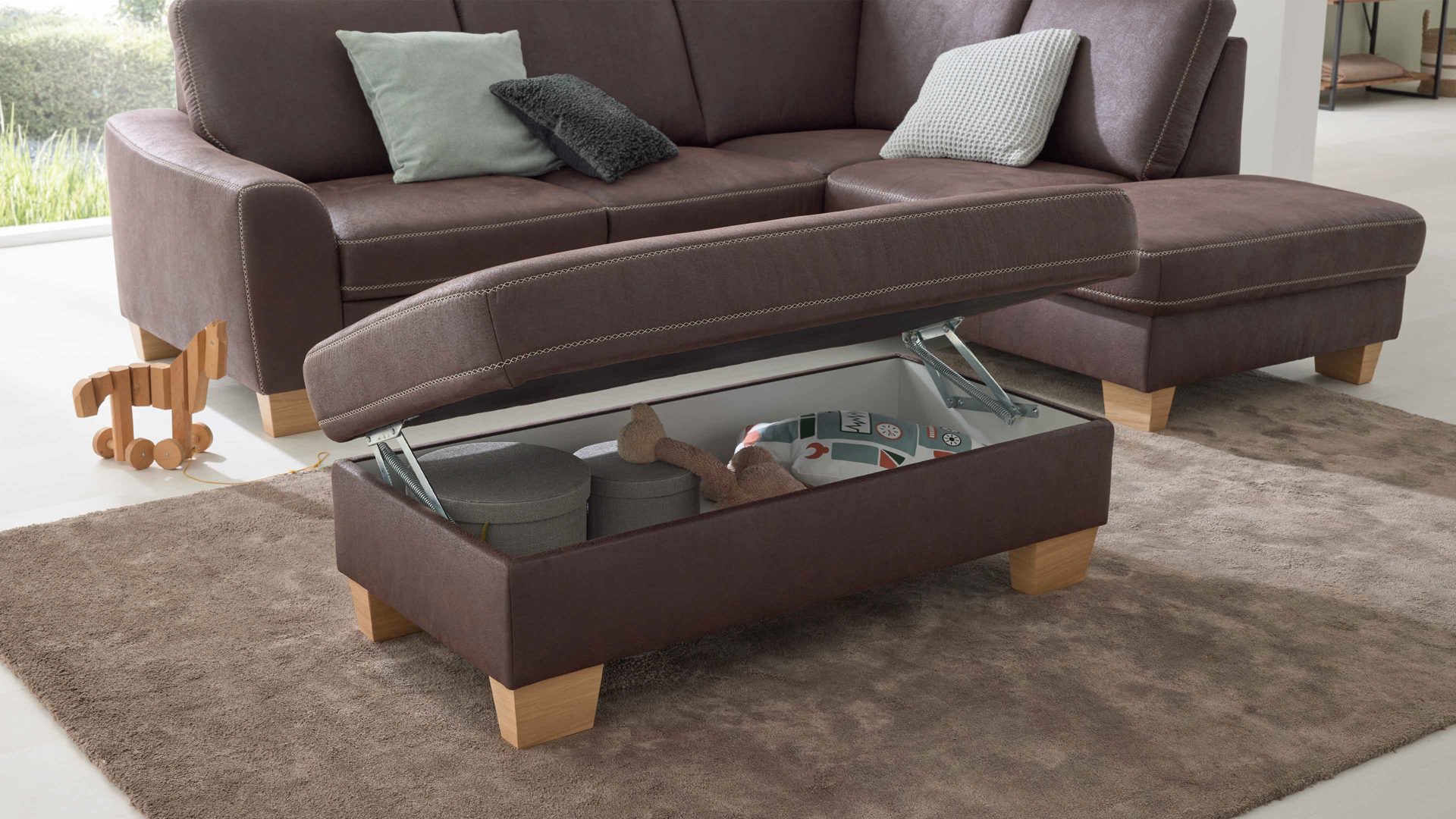 • Die Abbildung zeigt ein Wohnbeispiel, welches auch Dekoration sowie separat erhältliches Zubehör enthält. Im Lieferumfang enthalten ist eine Wohnlandschaft.