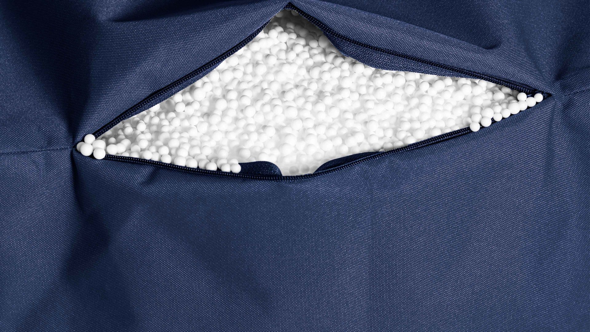Durch seine dicht gewebte Struktur ist der Stoff besonders widerstandsfähig, unempfindlich gegenüber Nässe und leicht zu reinigen. Eine zusätzlich aufgebrachte PVC-Beschichtung auf der Innenseite des Stoffes macht scuba® zudem extrem robust und reißfest. Zugleich ist er angenehm weich und bequem. Der schwer entflammbare Bezug macht den Sessel zum perfekten Begleiter für Garten, Terrasse und Balkon. Ist die Füllung entfernt, lässt sich der Bezug bei 40 Grad im Schonwaschgang waschen.