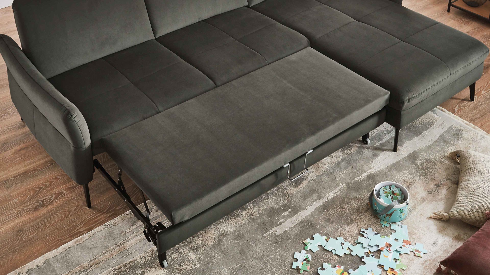 olivfarbener Mikrovelours Isa - Stellfläche ca. 276 x 178 cm