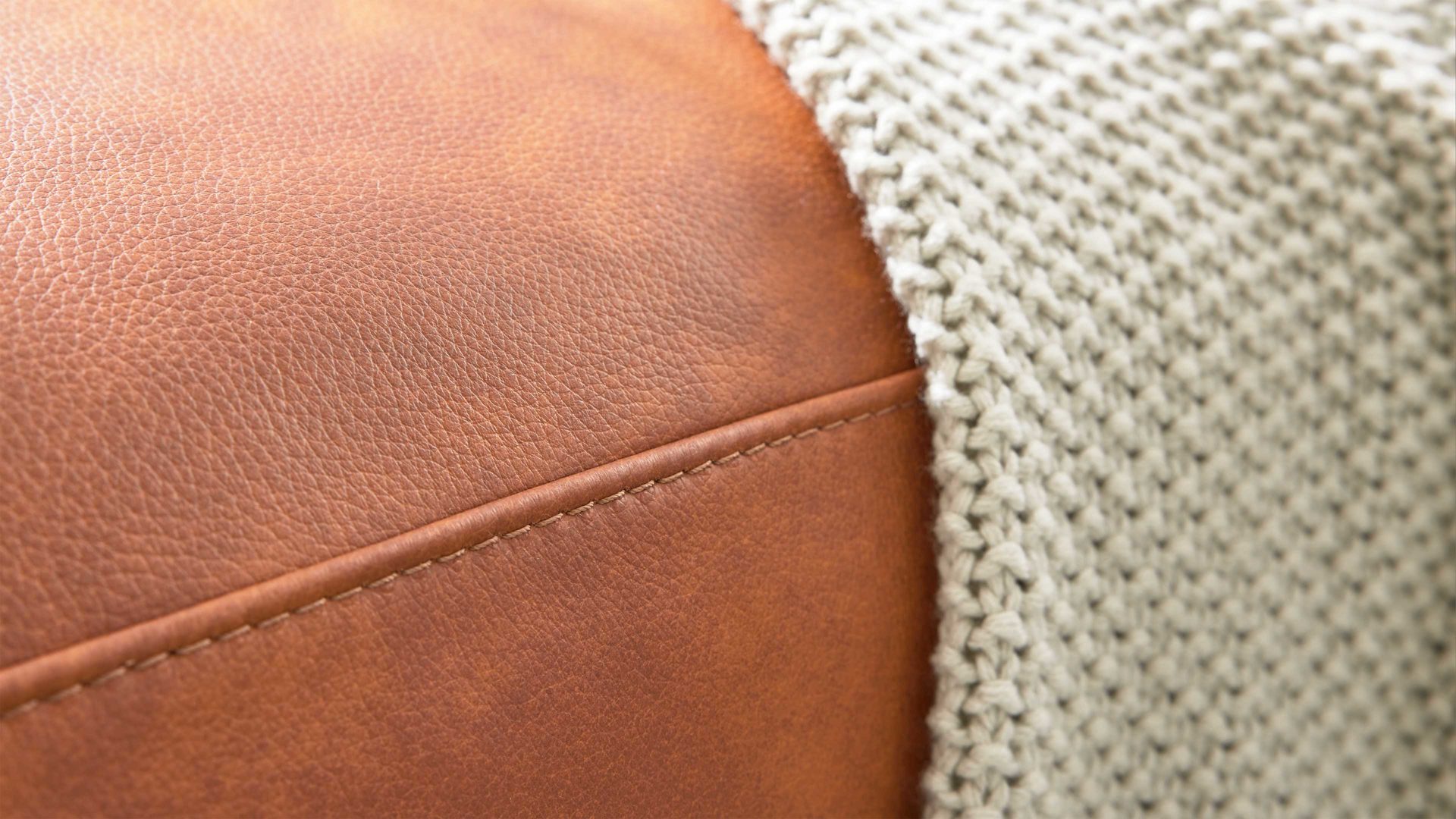 Der Zweisitzer aus der Interliving Sofa Serie 4004 verbindet klassisches Lederdesign mit modernem Komfort. Mit seinem cognacfarbenen LongLife-Leder, den kubischen, schmalen Armlehnen und den schwarzen Kunststoffgleitern bringt dieses Ledersofa stilvolle Wärme und Eleganz in dein Wohnzimmer – perfekt für alle, die hochwertiges Design und langlebige Qualität schätzen.