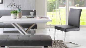 Der komfortable Polsterstuhl begeistert im zeitlosen Design, das sich hervorragend in Ihr Esszimmer oder Ihre Küche einfügt. Das Rechteckrohrgestell in Edelstahloptik harmoniert dabei hervorragend mit dem grauen Longlife-Dicklederbezug – dieser Materialmix ist ein wohnlicher Kontrast, der Blicke auf sich zieht.