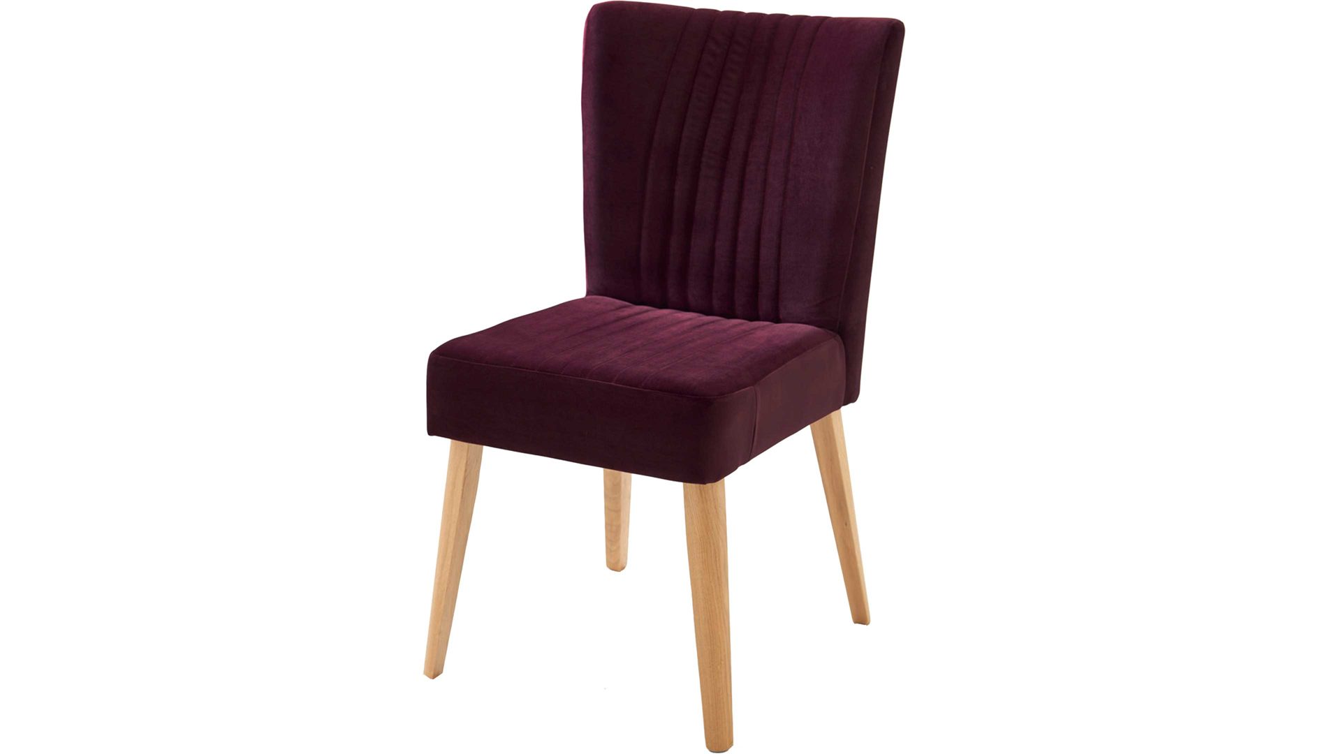Sie lieben Rotwein? Dann ist dieser komfortable Polsterstuhl mit einem weichen, chiantifarbenen Bezug im Samtlook genau das Richtige. Raffinierte Steppnähte, die auf Sitz und Rücken angebracht sind, verleihen diesem Sitzmöbel eine interessante optische Note. Stellen Sie diesen funktionalen Polsterstuhl mit den praktischen Maßen von ca. 46 x 92 x 66 cm (BxHxT) am besten an einen Esstisch aus Eiche, denn das Holzgestell des Stuhls besteht ebenfalls aus Eiche natur.