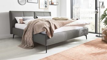 Die kubisch gepolsterten Bettseiten mit anthrazitfarben lackierter Innenseite ergänzen das klare Design und harmonieren perfekt mit den dunklen Metallfüßen. Für noch mehr Individualität kannst du aus vier weiteren Fußvarianten in zwei Höhen wählen.
