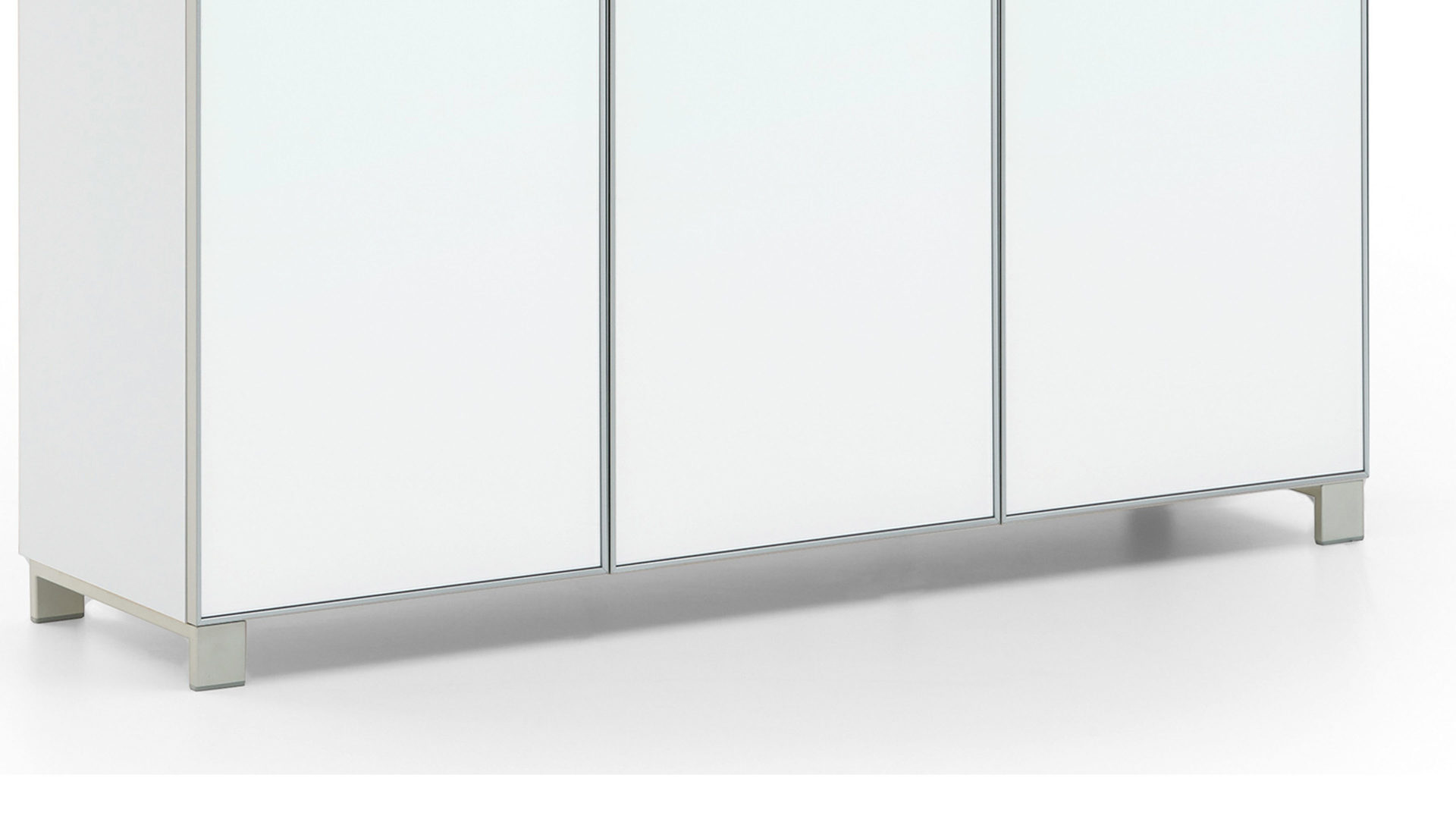 Die VOSS MÖBEL Schuhkommode Santina ist modern-elegant designt. Mit dem klassisch weiß lackierten Korpus und den optiweißen Glasfronten bringt sie jede Menge Helligkeit in Ihren Flur. Aluminiumfarbene Griffe runden das edle Erscheinungsbild des optisch wie funktional ansprechenden Schuhschranks stilsicher ab.