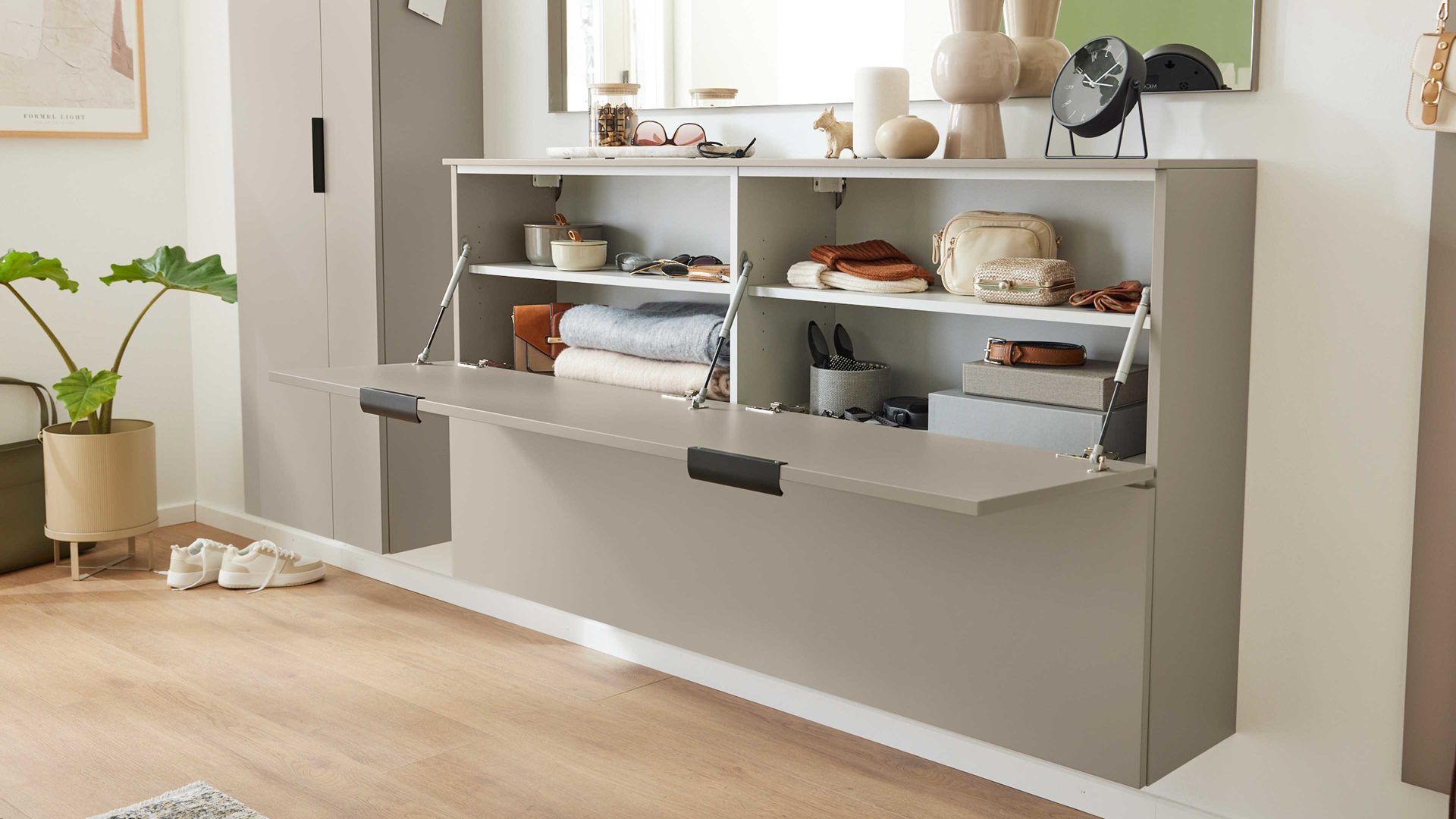 graubeiger Mattlack - zwei Klappen, Breite ca. 160 cm