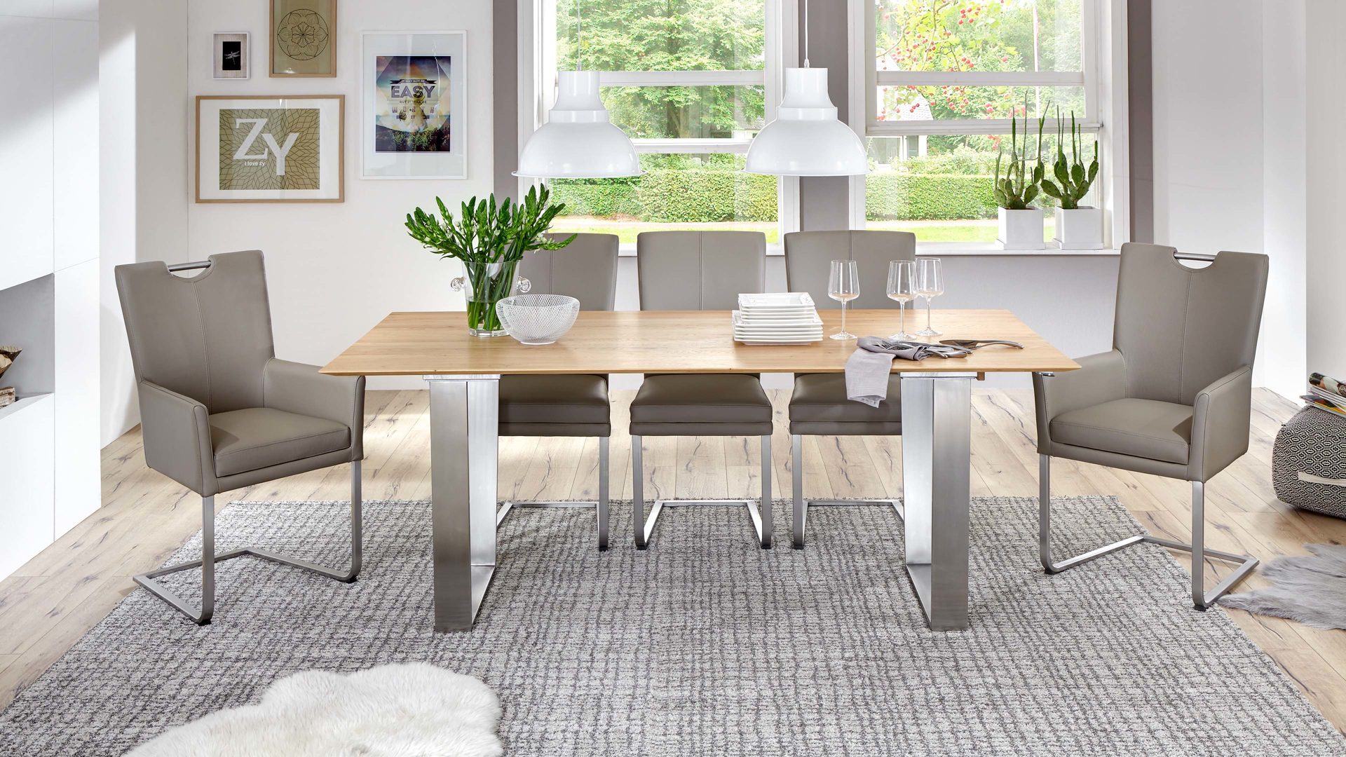 Dann empfehlen wir Ihnen den LaVie Color-Line Armlehnstuhl bzw. Polsterstuhl 0651 mit stonefarbenem Leder und Ziernähten. Als zusätzliches Highlight besteht das pflegeleichte Edelstahlgestell des Sitzmöbels aus rundem Flachstahl. Machen Sie, Ihre Familie und Freunde es sich auf der hochwertigen Kaltschaumpolsterung, einer Sitzhöhe von ca. 49 cm und einer Sitztiefe von ca. 44 cm bequem.