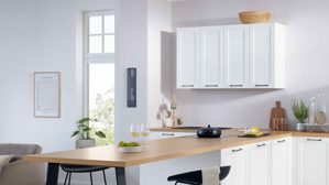WERT KÜCHE® Vida - Moderne Landhausküche in Satinweiß mit natürlicher Asteiche