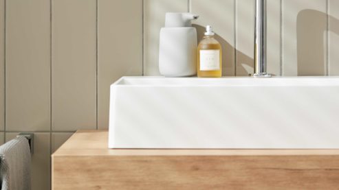 Eine Armatur und weitere dargestellte Einrichtungsgegenstände sind separat gegen Mehrpreis bestellbar.