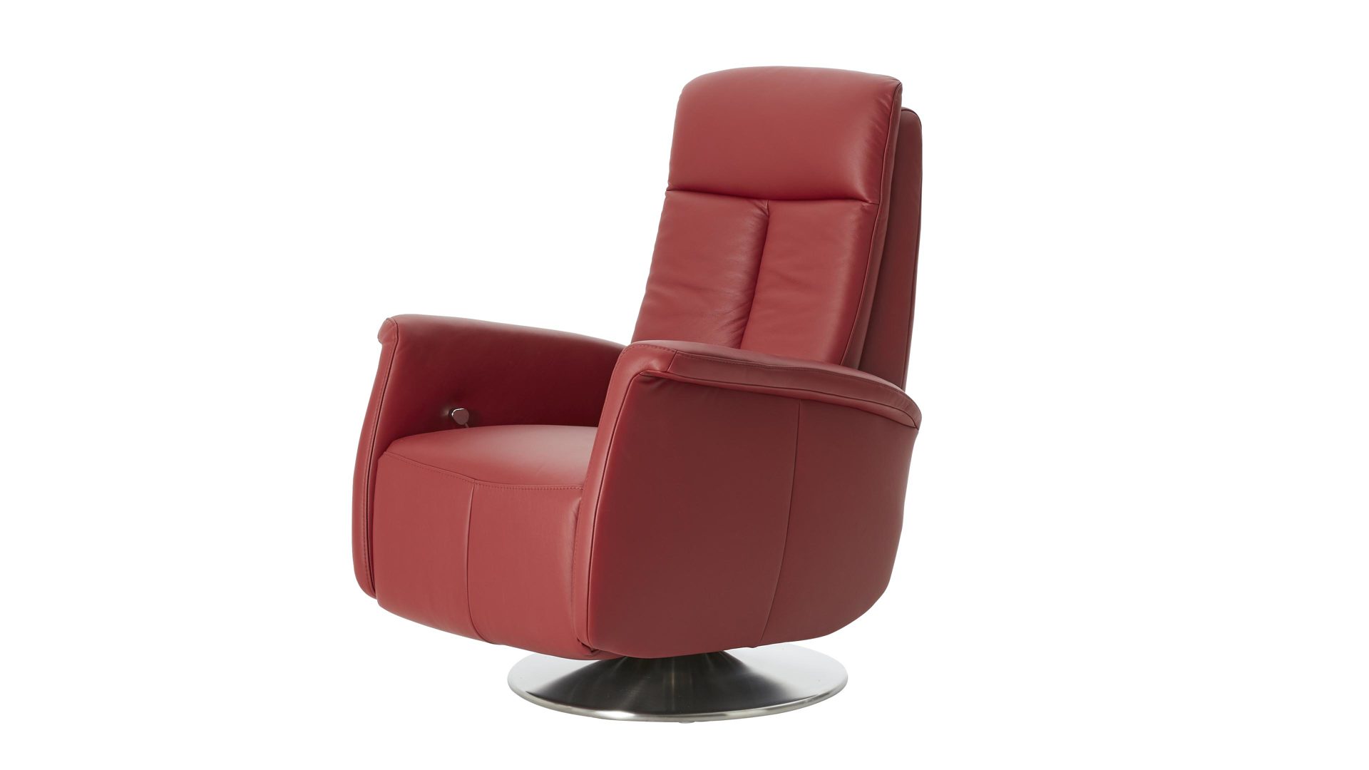 Der Modulmaster Relaxsessel MM-PN1035 kombiniert einen Edelstahl-Tellerfuß mit einem rossofarben pigmentierten Lederbezug auf der Rückenlehne D und der Armlehnvariante 2. Er strahlt intensive Eleganz aus und bringt warmes, einladendes Flair ins Wohnzimmer. Durch die erstklassigen, hervorragend verarbeiteten Materialien ist der modern designte Sessel robust und stabil, pflegeleicht und bei sorgsamer Behandlung besonders langlebig.