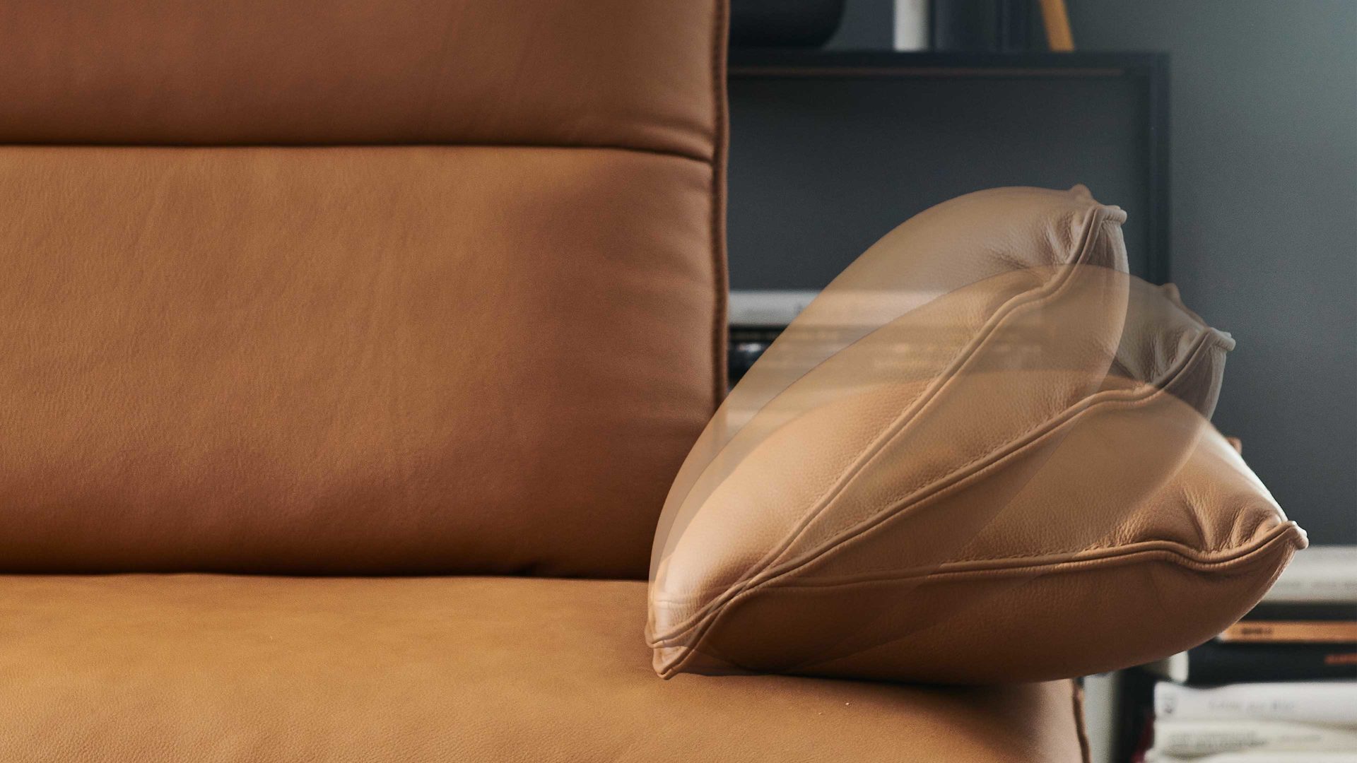 Besonders hervorzuheben sind die Funktionsrücken und die Sitztiefenverstellung des Sofas. Durch die zweifach verstellbare Rückenlehne mit eingearbeiteten Metallgelenken kann die Sitztiefe um bis zu 29 cm vergrößert werden. Dadurch erreicht das Ledersofa eine Gesamttiefe von ca. 113 cm. Durch das Umklappen der Rückenlehne nach hinten verringert sich die Gesamthöhe um bis zu 30 cm, während sich die Gesamttiefe um weitere ca. 34 cm vergrößert.
