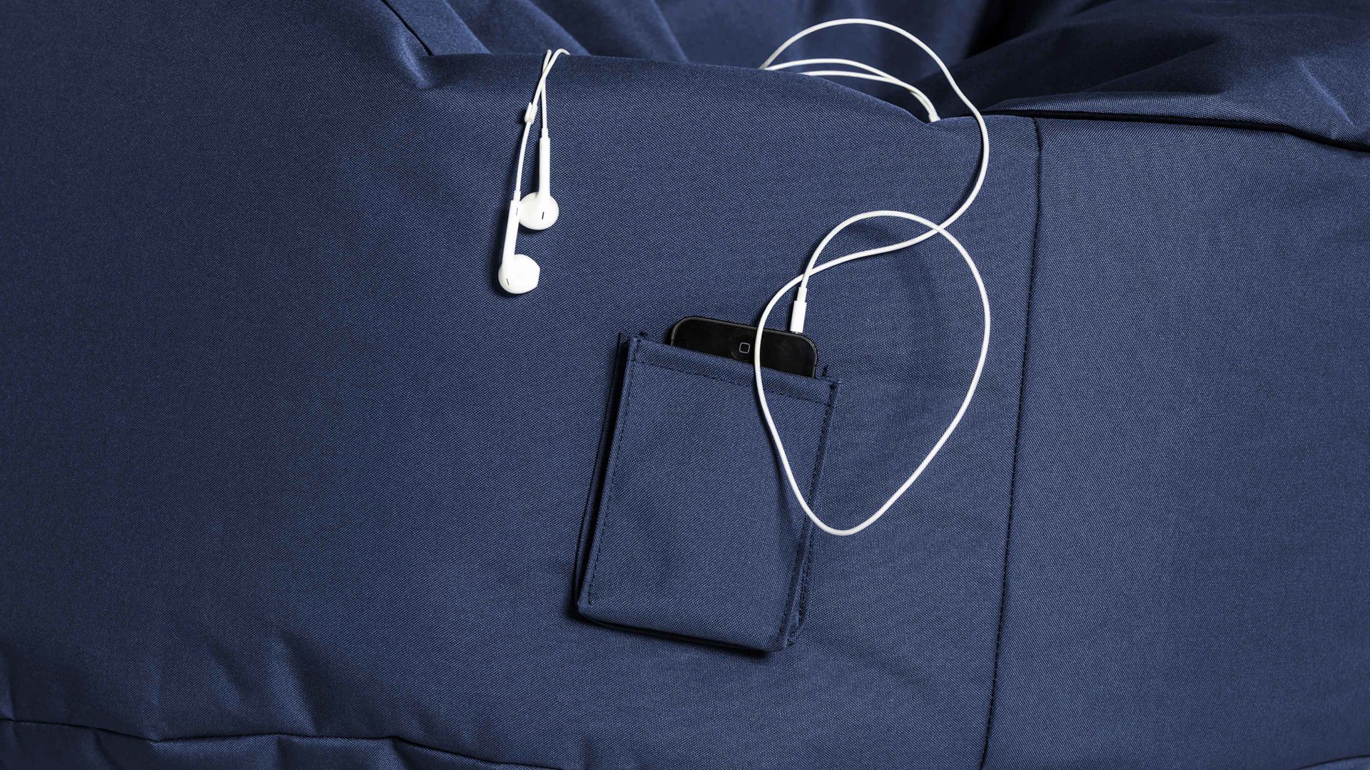 Der jeansblaue Sitzsack-Sessel Made in Germany ist genau das richtige Sitzmöbel zum Lesen, Entspannen oder zum Fernsehen.