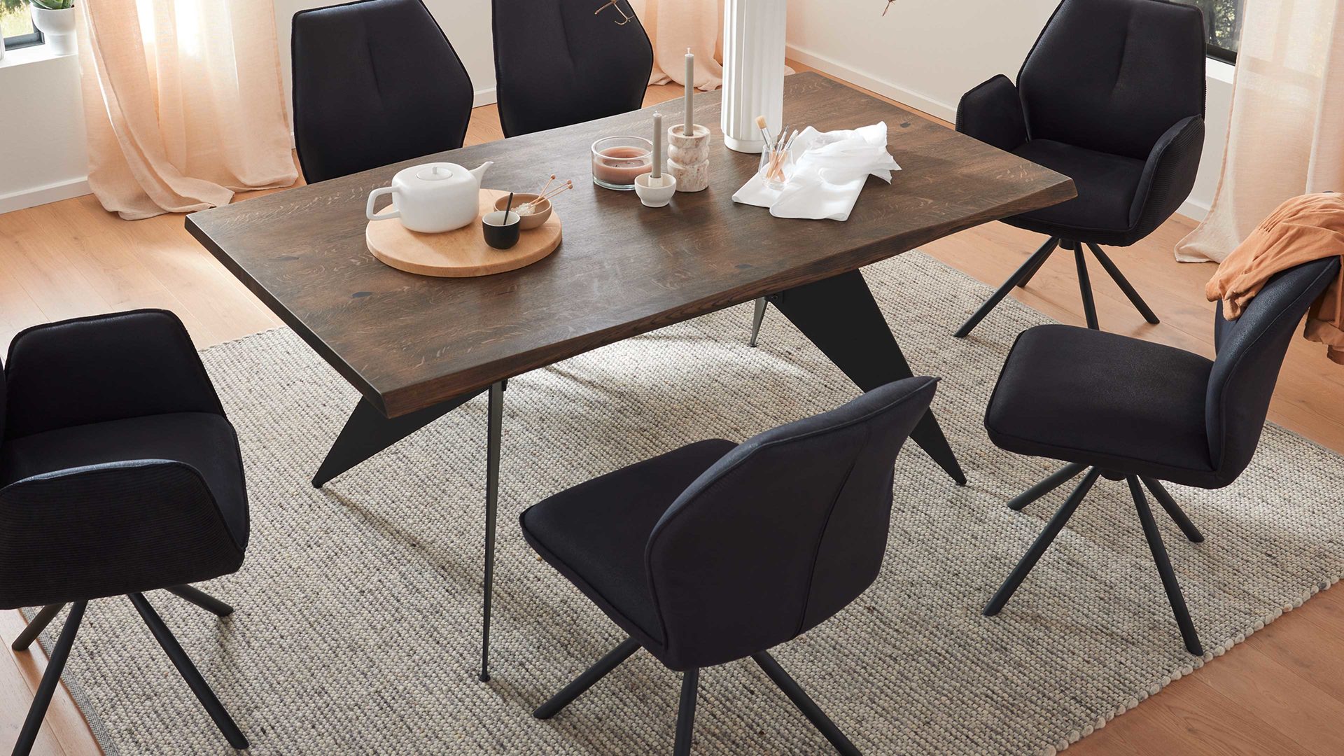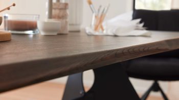 Der Esstisch aus der Interliving Esszimmer Serie 5116 begeistert mit einer ausdrucksstarken Optik und hochwertigen Materialien – ideal für dein stilvoll eingerichtetes Esszimmer. Die ca. 40 mm starke Tischplatte aus geölter Mooreiche bringt mit ihrer gedrehten Kante eine außergewöhnliche Formensprache ins Spiel. So entsteht eine moderne Esstafel, die Natürlichkeit und Design raffiniert miteinander verbindet.