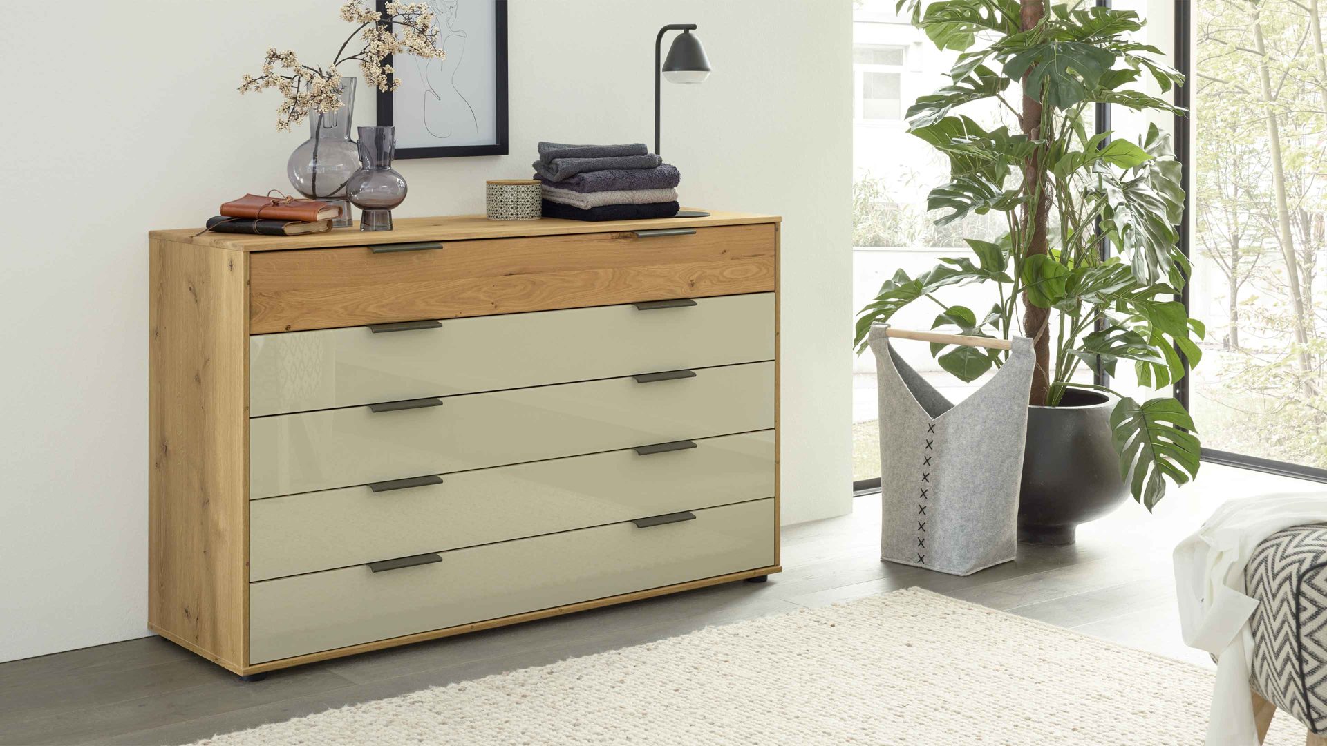 Die Kommode macht sich solo genauso gut wie in Kombination mit anderen Möbeln der Serie.