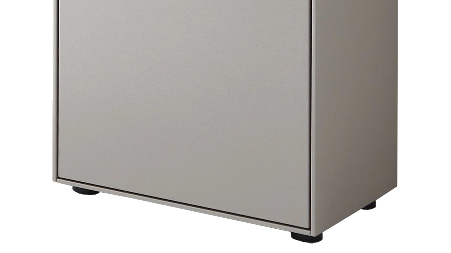 samtgraue Mattlackoberflächen und ein carbonfarben pulverbeschichteter Metallgriff