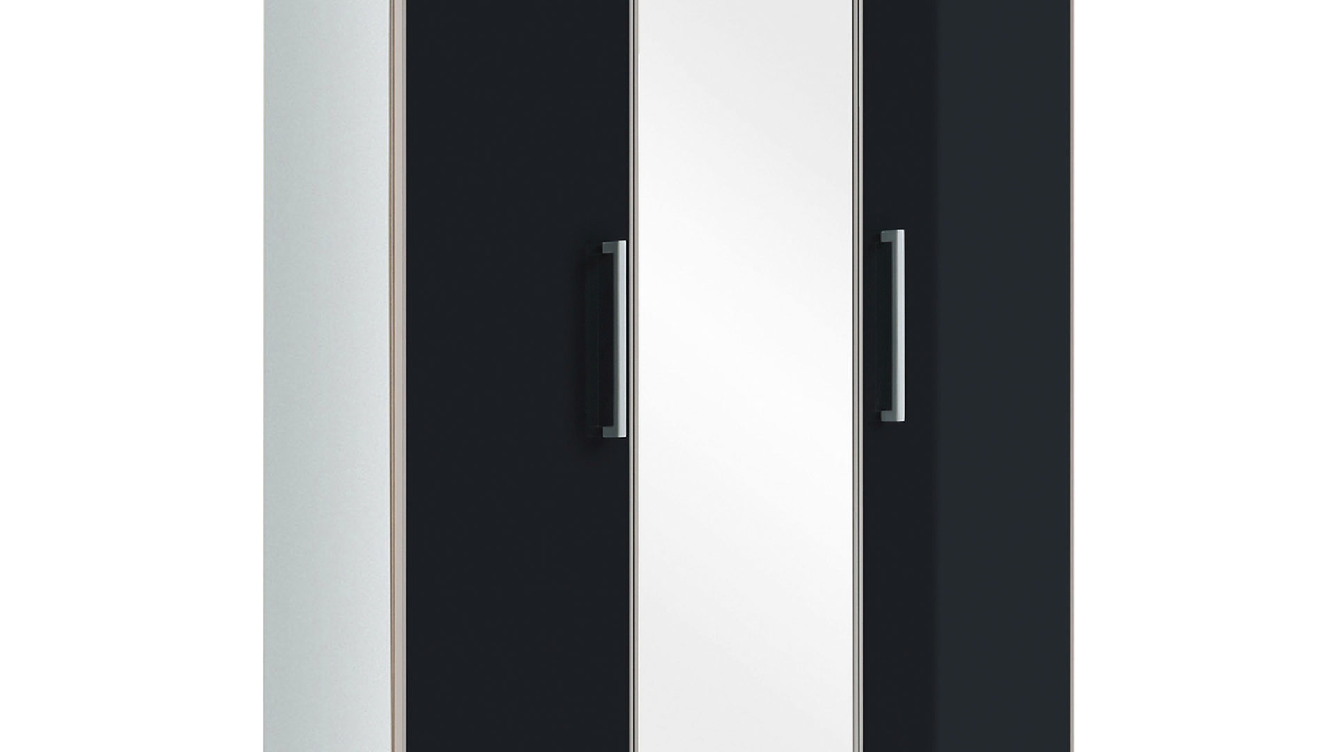 Modernes Design und Funktionalität gehen hier Hand in Hand. Der Garderobenschrank hat einen weiß lackierten Korpus und anthrazitfarbene Glasfronten mit einer Spiegelauflage. Hinter der linken Holztür verstecken sich sieben Schuhgitter, die Stiefel, High Heels und Turnschuhe geschmackvoll aufbewahren, auf der anderen Seite erwartet Sie ein großes Fach, in dem Sie Jacken und Mäntel aufbewahren können.