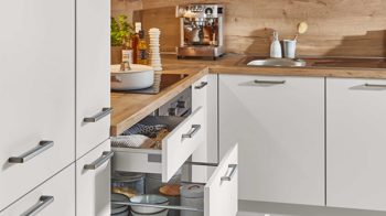 Optional können Sie die Küche um eine Armatur sowie weitere Elektrogeräte ergänzen und so individuell an Ihre Bedürfnisse anpassen.