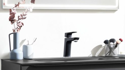Interliving Bad Serie 7945 – moderne Waschtisch-Armatur in Schwarz und Chrom