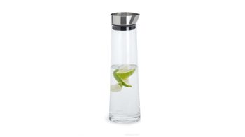 blomus Dekantierkaraffe Delta | Klarglas | matter Edelstahl | Silikondichtung | mit integriertem Sieb – perfekt zum Lüften und Filtern | tropffreies Ausgießen | organische Form mit Daumenmulde für gute Handhabung und komfortables Eingießen | Höhe ca. 28 cm, Durchmesser ca. 18 cm | spülmaschinengeeignet | reddot award