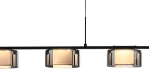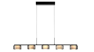 matt schwarzes Metall kombiniert mit fünf runden Lampenschirmen aus Rauchglas