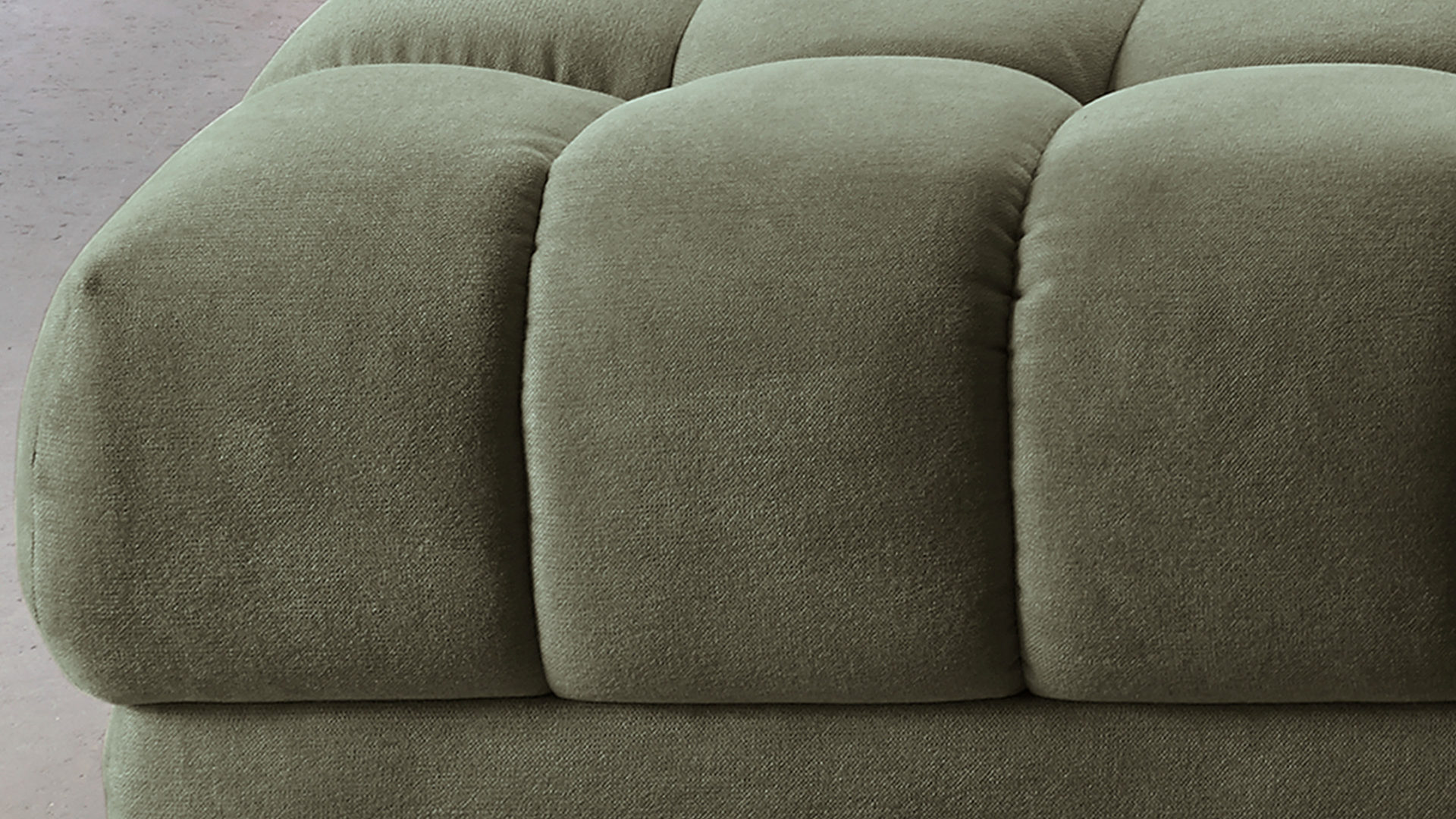 Er kombiniert silberfarbene Rollenfüße aus Metall, deren Robustheit die nötige Stabilität des Sitzmöbels gewährleistet, mit einem dunkel-moosfarbenen Chenillebezug, der vor allem durch seine weiche Haptik begeistert. Die perfekt aufeinander abgestimmten Farben verleihen dem Polsterhocker eine harmonisch-elegante und moderne Ausstrahlung. Für das gewisse Etwas sorgt die gesteppte Sitzfläche.
