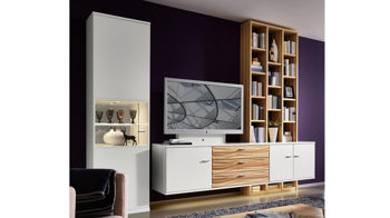 hartmann Serie Caya - Wohnwand mit Vitrinenschrank und Regalen