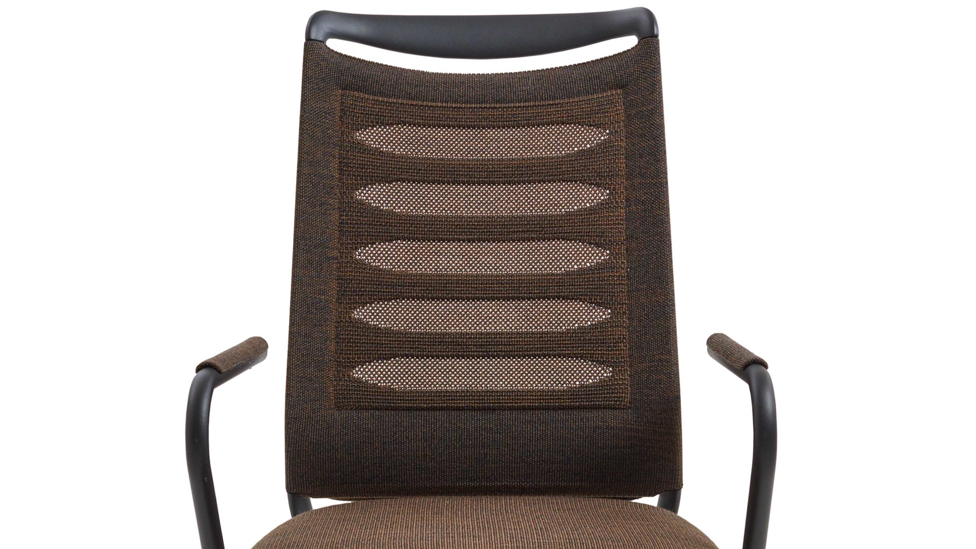 Der VENJAKOB Polsterstuhl Lilli 3000 mit Armlehnen besteht aus hervorragenden Materialien, ist stilvoll designt und bietet hohen Komfort. Er kombiniert ein matt anthrazitfarbenes Ellipsenrohr-Stativgestell aus Metall mit einem bronzefarbenen Nylonbezug und einer bequemen Polsterung.