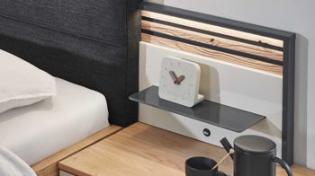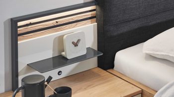 Alternativ ist die Schlafzimmerserie auch in Lack Basalt mit Echtholz Balkeneiche erhältlich. Sie können also das Design wählen, das am besten zu Ihrem Geschmack und Ihrem Schlafzimmer passt.