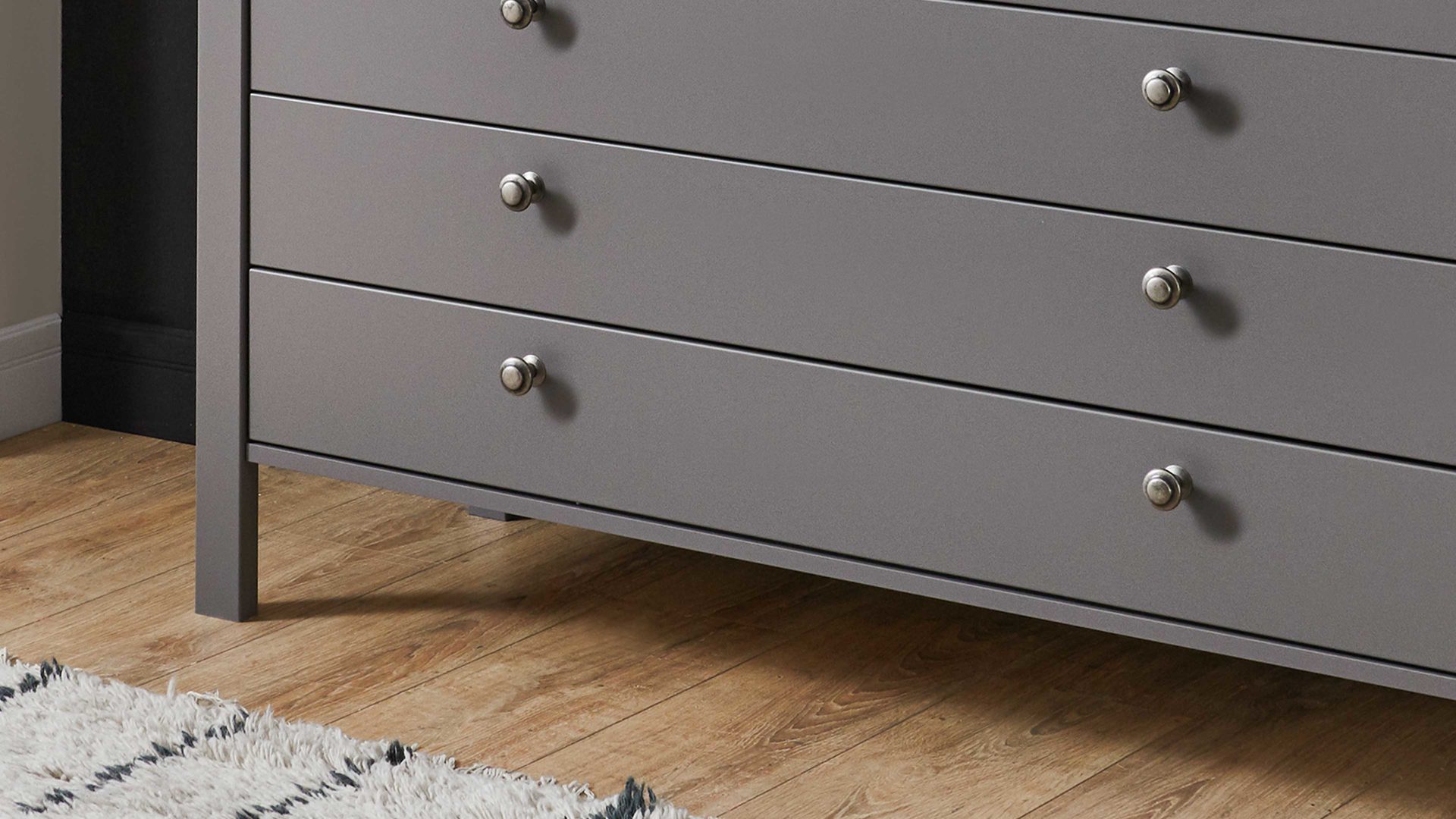 manhattengrauer Lack & Wildeiche - fünf Schubladen, Breite ca. 134 cm