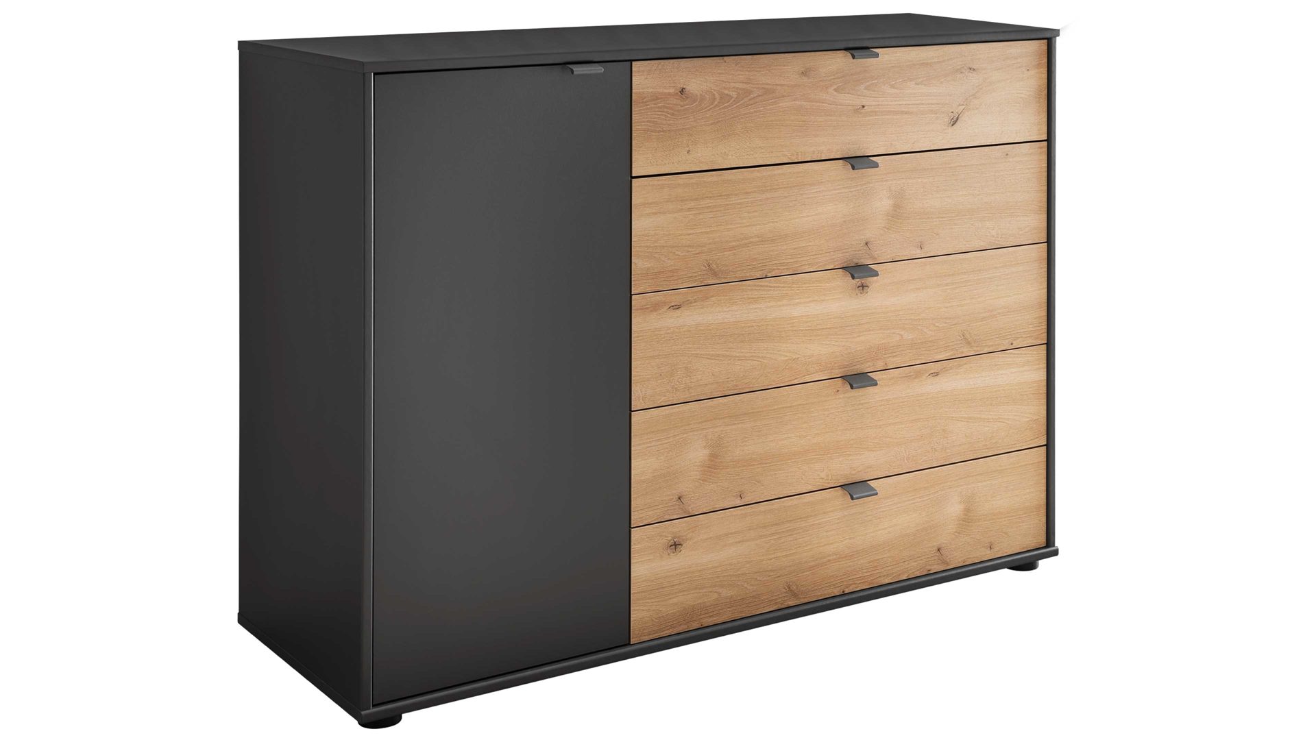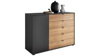 Graphit & Eiche Bianco - zwei Türen, fünf Schubladen, Breite ca. 120 cm