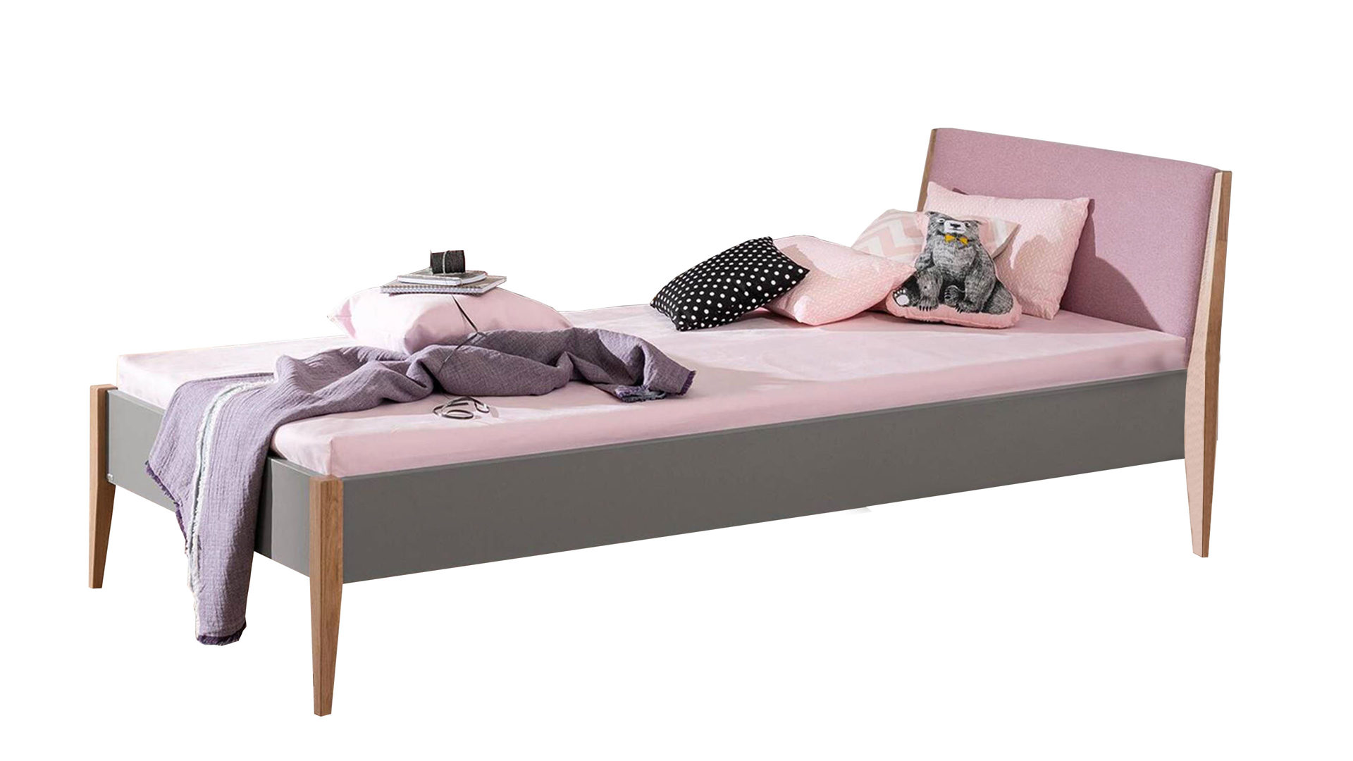 Das hochwertige PAIDI Bettgestell Sten kombiniert massive Eiche mit einem aschblau stoffbezogenen Polsterkopfteil. Letzteres zeichnet sich durch seine angenehme Haptik sowie den Anlehnkomfort aus, den es beim Sitzen im Bett bietet.