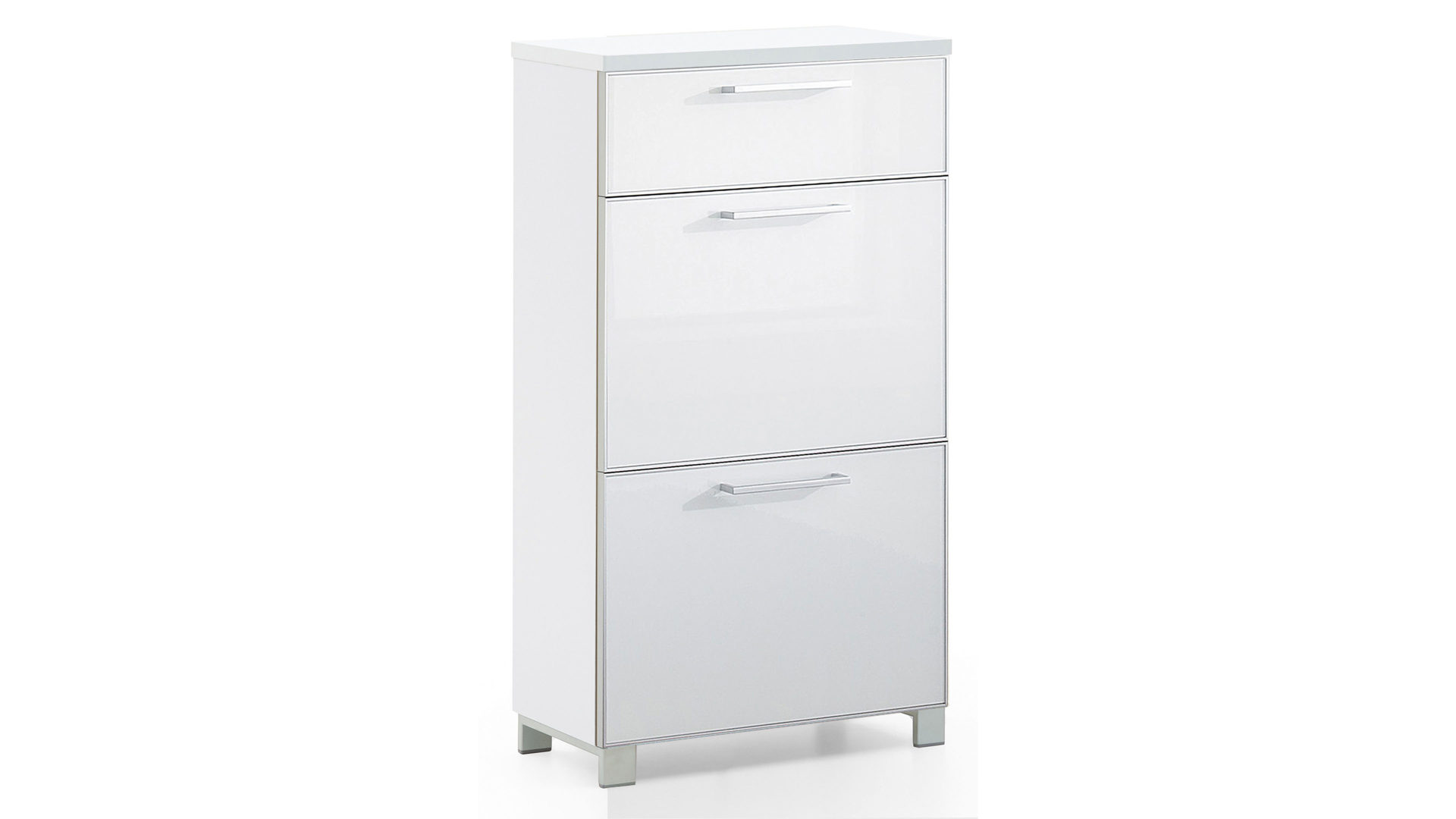 Der VOSS MÖBEL Schuhschrank Santina ist modern-elegant designt. Mit dem klassisch weiß lackierten Korpus und den optiweißen Glasfronten bringt er jede Menge Helligkeit in Ihren Flur. Edelstahlfarbene Griffe runden das noble Erscheinungsbild des optisch wie funktional ansprechenden Schuhkippers stilsicher ab.