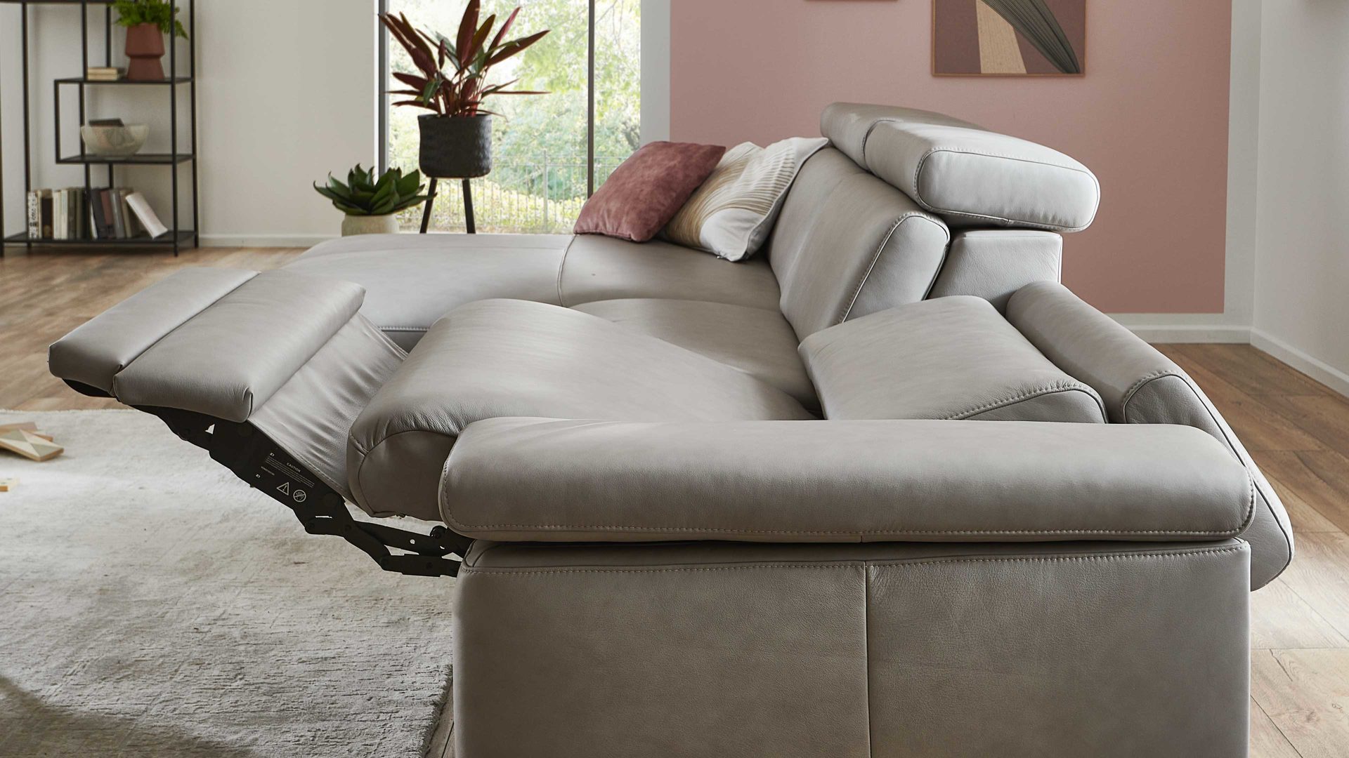 So funktioniert die WallAway-Funktion einschließlich Herz-Waage: Im ersten Schritt fährt die Beinauflage auf Sitzhöhe. Dabei geht der Sitz zusätzlich einige Zentimeter nach oben sowie nach vorn. In dieser Position bleibt der Rücken wandfrei.