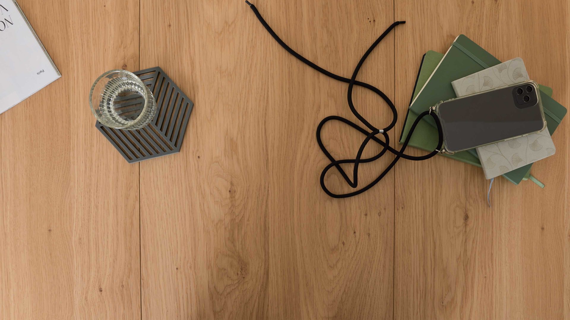 Die Kombination aus natürlichem Wildeichefurnier, dunklen Akzenten und robusten Metallelementen in Anthrazit-Metallic sorgt für eine harmonische Balance zwischen Wohnlichkeit und modernem Design. Die feine Maserung der Tischplatte verleiht dem Tisch Tiefe und Wärme, während die klaren Linien und das formstabile Untergestell ein Gefühl von Leichtigkeit vermitteln.