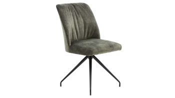 Vier Stühle kommen als klassische Vierfußstühle mit Maßen von ca. 49 x 87 x 59 cm (BxHxT) und passen hervorragend als kompakte, komfortable Sitzplätze an die Längsseiten des Tisches. Ergänzt werden sie durch zwei Armlehnstühle mit ca. 56 x 87 x 59 cm (BxHxT), die zusätzlich mit einer 360-Grad-Drehfunktion mit Rückholfunktion ausgestattet sind. So kannst du dich bequem drehen, ohne den Stuhl zu verrücken, und kehrst automatisch in die Ausgangsposition zurück. Der mattschwarz pulverbeschichtete Metall-Spinnenfuß unterstreicht den modernen Charakter der Essgruppe und harmoniert perfekt mit den Tischfüßen.