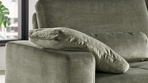 Des Weiteren können Sie einige Details an Ihre Wünsche und Bedürfnisse anpassen. Die Polstermöbel sind preisgleich auch mit der etwas festeren Federkernpolsterung sowie mit glänzenden Metallfüßen erhältlich. Darüber hinaus profitieren Sie von der umfangreichen Bezugauswahl. Es sind verschiedene Zusammenstellungen planbar, die sich mit vielen Funktionen ergänzen lassen.