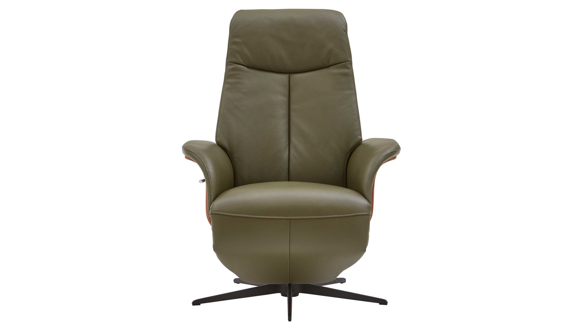 Sie sind auf der Suche nach einem schönen und sehr bequemen Sessel? Dann ist dieser Relaxsessel bzw. Drehsessel mit einem strapazierfähigen dunkelgrünem Lederbezug, der Sitzschale in geöltem Nussbaum und einem modernen Sternfuß aus schwarzem Metall genau das richtige Sitzmöbel für Sie. Nutzen Sie die manuell verstellbare Relaxfunktion und stellen Sie den Ledersessel so ein, dass Sie komfortabel lesen und fernsehen können.