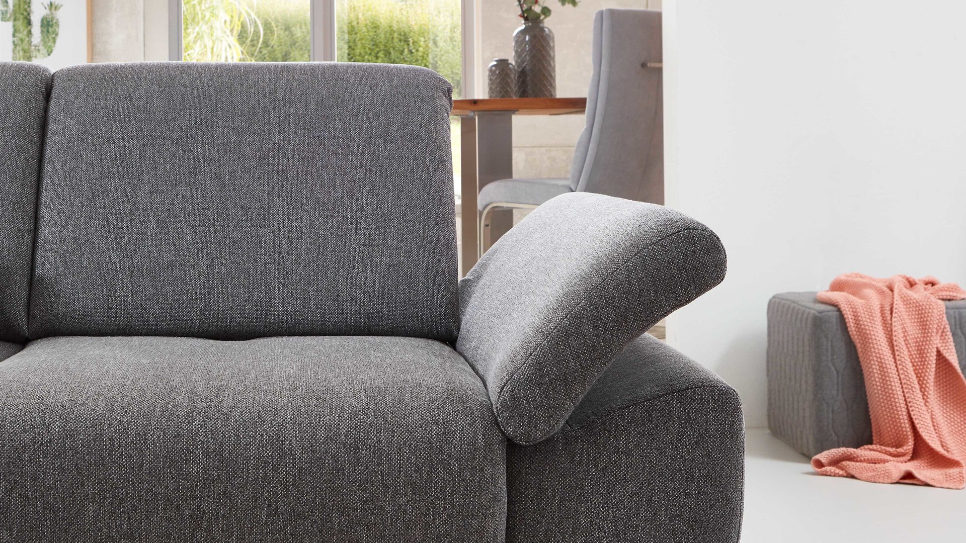 Entdecken Sie jetzt die manuelle Armlehnverstellung des Polsterprogramms Tiamo Plus und erleben Sie Komfort auf einem neuen Level. Gönnen Sie sich ein Stück Luxus und genießen Sie entspannte Stunden in Ihrem Zuhause.