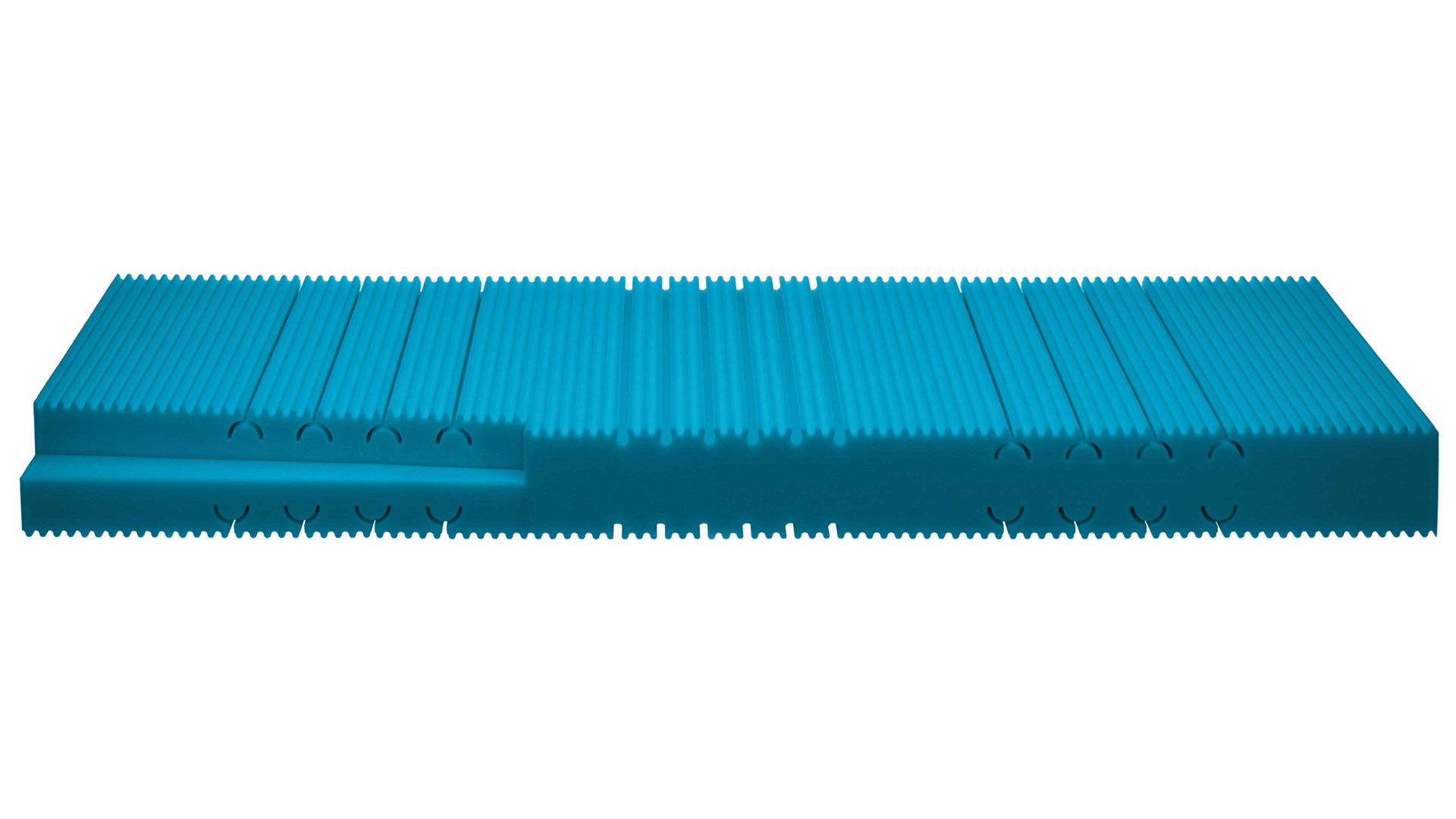 40 g/m³. Durch die ergonomische Zoneneinteilung wird jeder Körperteil optimal gestützt. Die Kernhöhe beläuft sich auf ca. 16 cm.