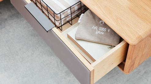 Du kannst aus zwei Holz- und Mattglasfarben sowie zwei Stofffarben wählen und so den Look deines Schlafzimmers perfekt auf deinen Stil abstimmen. Ob Bettgestell mit Holz- oder Polsterkopfteil, elegante Beimöbel oder durchdachte Schranklösungen – alles ist aufeinander abgestimmt und individuell planbar.