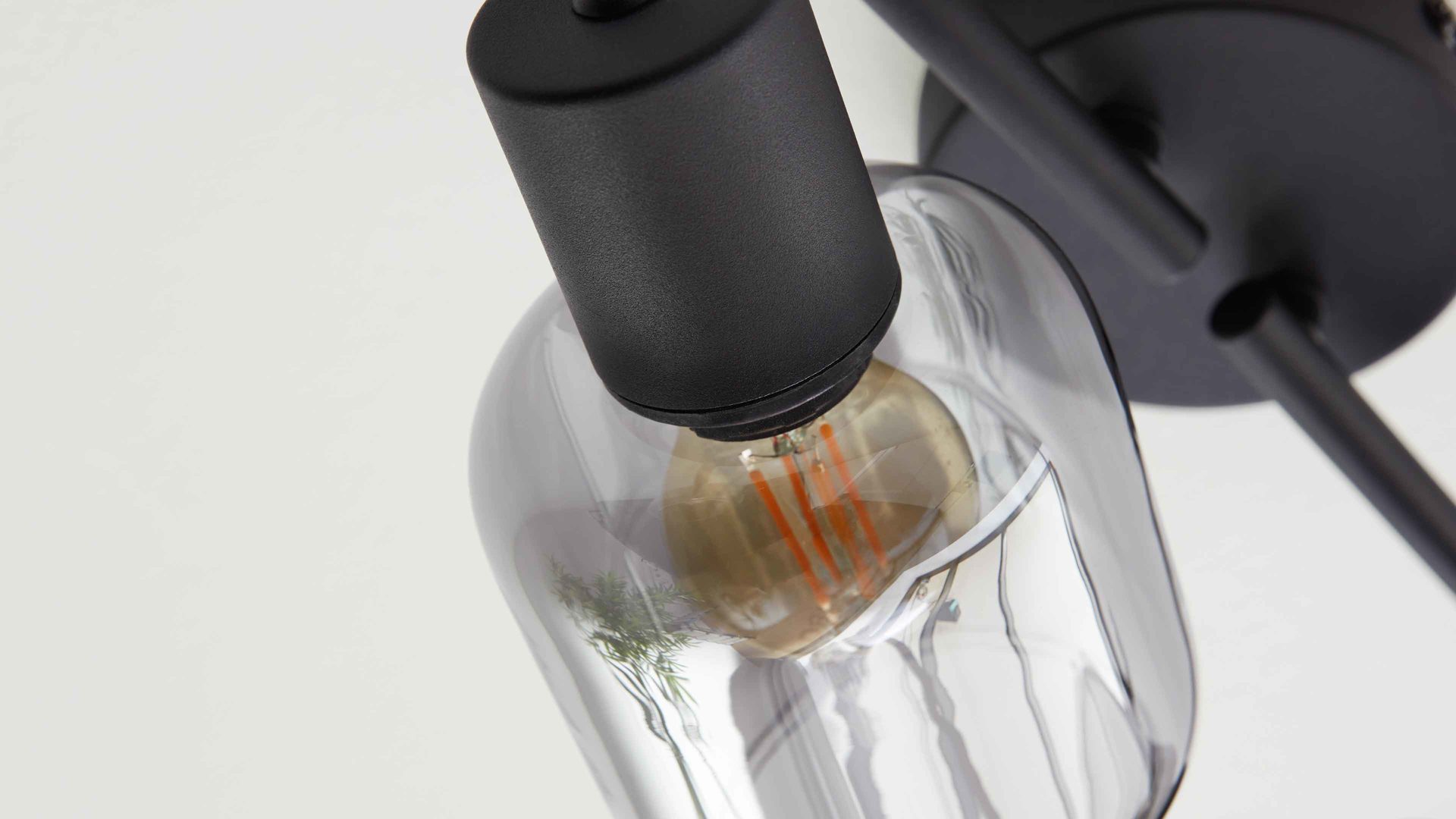Die stilvolle Deckenlampe aus der Interliving Leuchten Serie 9341 vereint markantes Design mit edler Ausstrahlung. Mattschwarzes Metall trifft auf vier schwenkbare Rauchglas-Schirme mit Spiegeloptik – ein moderner Industrial Look, der jedem Raum Charakter und Tiefe verleiht. Ob im Wohnzimmer, Flur oder Homeoffice: Diese Leuchte setzt ein ausdrucksstarkes Statement über dir.