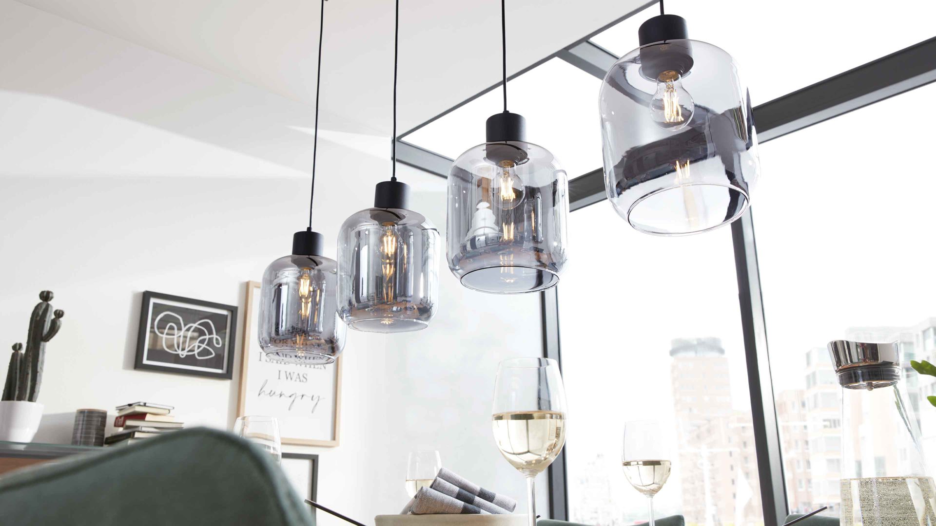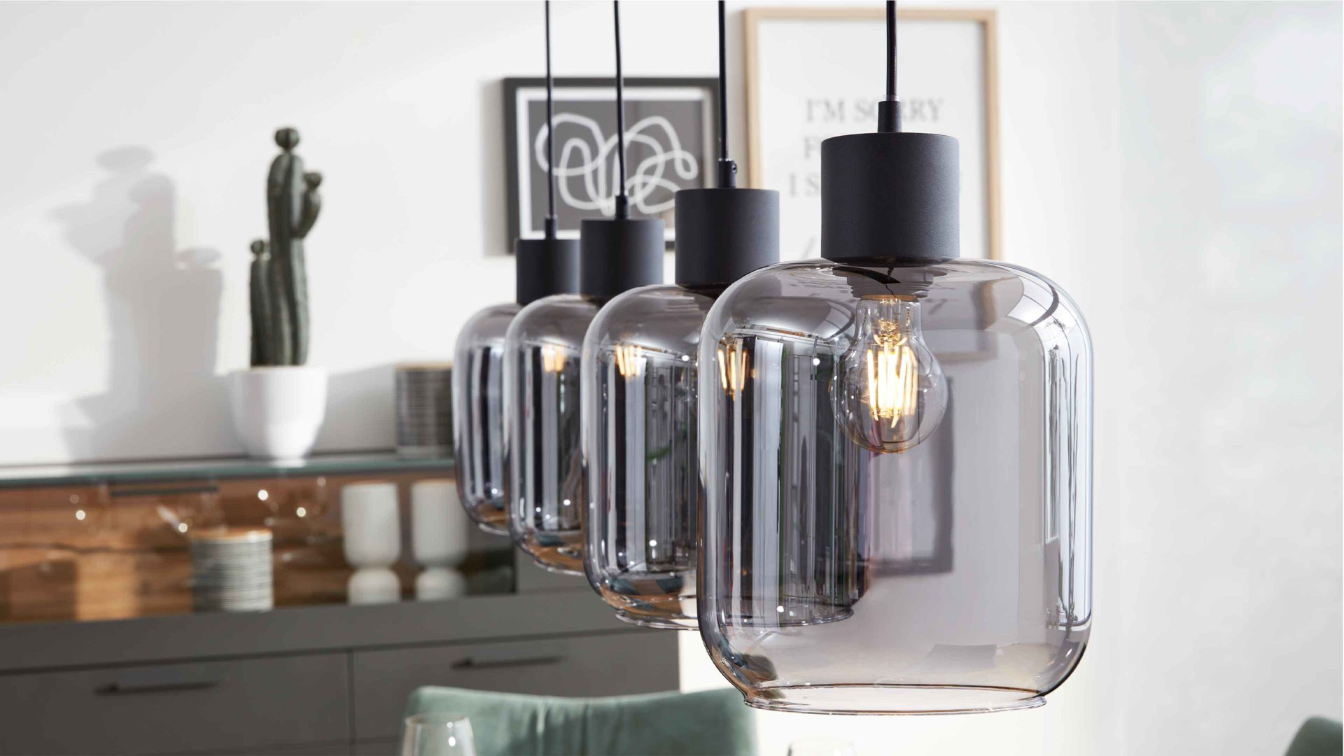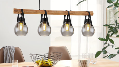 Das vierflammige Design sorgt für optimale Lichtverteilung – perfekt für breite Esstische und großzügige Räume. Mit einer Länge von ca. 115 cm bietet die Leuchte eine beeindruckende Präsenz, ohne aufdringlich zu wirken. Die Kabellänge von ca. 150 cm je Pendel ermöglicht eine flexible Höhenanpassung, sodass du die Lampe exakt an deine Raumhöhe und Lichtvorstellung anpassen kannst.