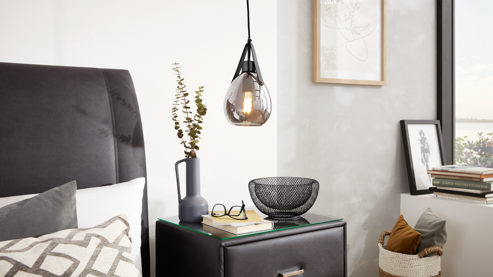 Die elegante Hängelampe aus der Interliving Leuchten Serie 9341 bringt modernen Industrie-Charme in dein Zuhause. Mit mattschwarzem Metall und rauchfarben verspiegeltem Glas vereint sie Eleganz und Coolness in einem klaren, geradlinigen Design. Ob über dem Esstisch, in offenen Wohnbereichen oder über deiner Kücheninsel – diese Pendelleuchte wird zum stylischen Highlight in jedem Raum.