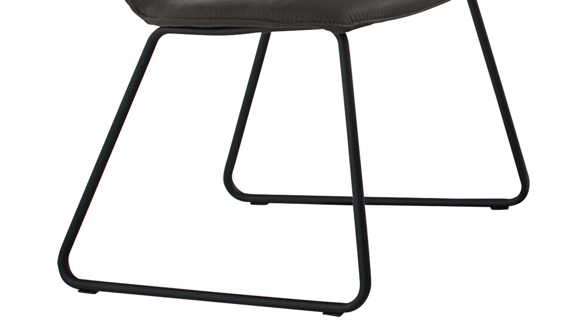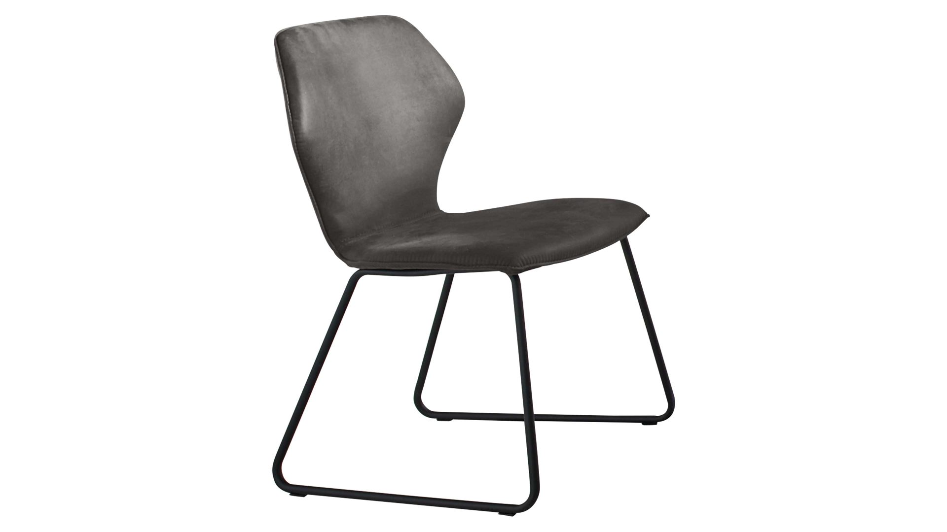 Er verfügt über einen anthrazitfarbenen Stoffbezug, der mit nahezu jedem Einrichtungsstil harmoniert. Ein schwarzes Eisen-Kufengestell verleiht ihm zuverlässige Stabilität. Bei Maßen von ca. 47 x 83 x 41 cm (BxHxT) weist der Esszimmerstuhl eine Sitzhöhe von ca. 48 cm sowie eine Sitztiefe von ca. 48 cm auf.
