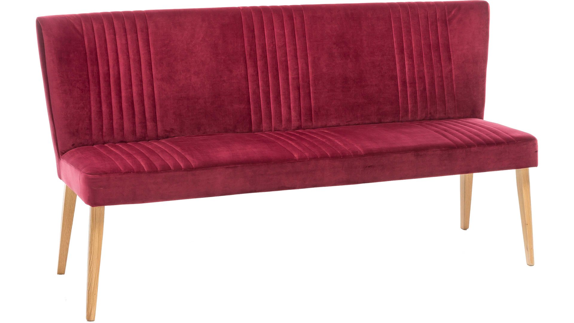 Mit einer spektakulären Farbkombination ist diese Polsterbank ein absoluter Eyecatcher in Ihrem Wohnzimmer oder der Wohnküche. Mit leuchtendem Rot sind Sitzfläche und Rückenfläche bezogen, wohingegen die Rückseite camelfarben ist. Die vier Eichenholzfüße passen perfekt zum Design des Wohnzimmermöbels oder Esszimmermöbels. Ein wWeiteres schönes Detail ist die Knopfheftung im Rücken.
