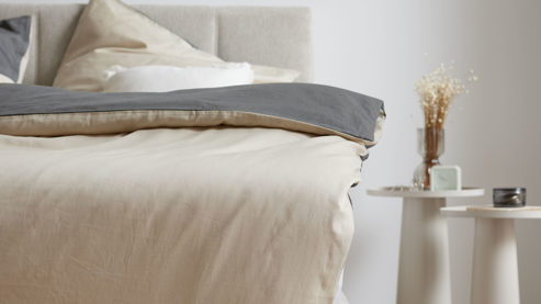Baumwollsatin in Sand & Anthrazit - ca. 135 x 200 cm