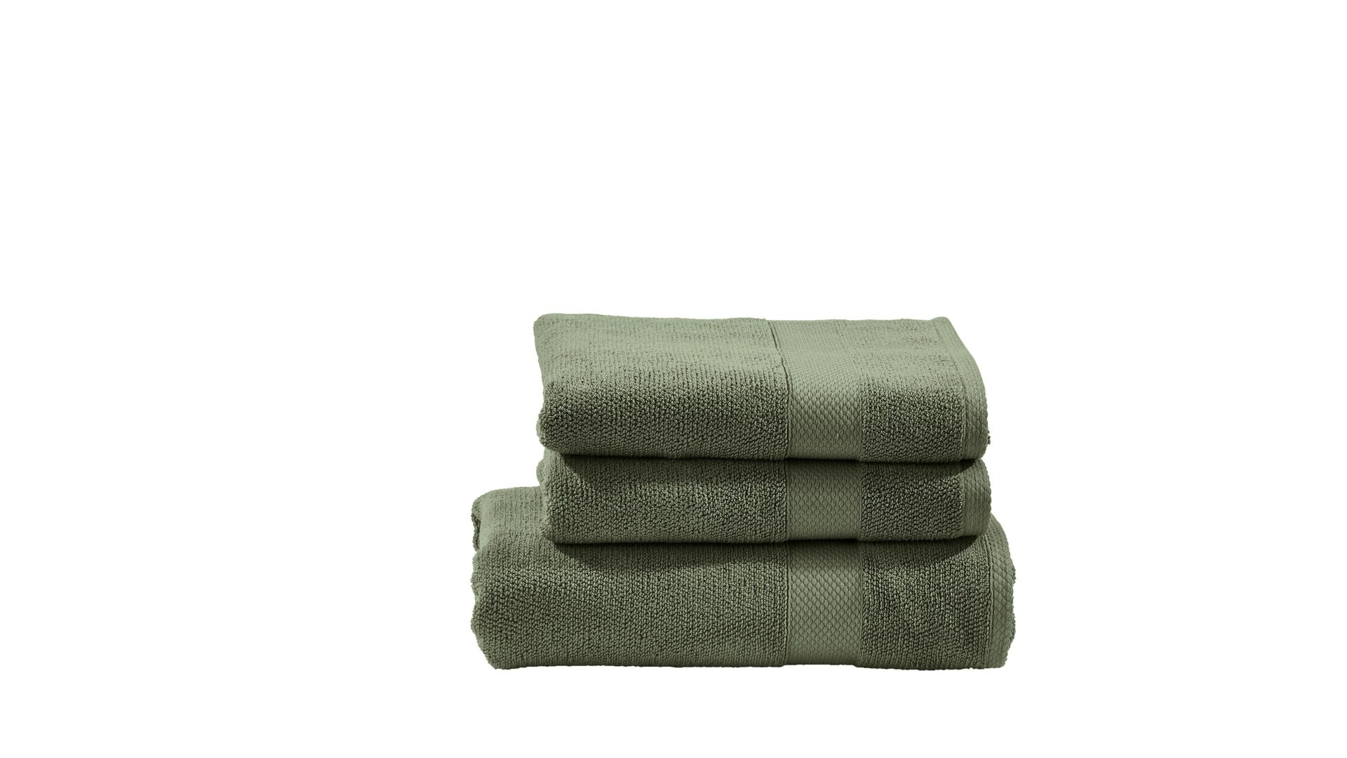 Das dreiteilige Handtuch-Set Deluxe ist nicht nur in Khaki , sondern auch in vielen weiteren Trendfarben erhältlich.