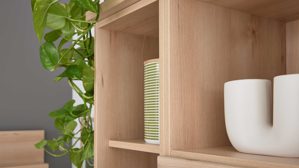 Die robusten, pflegeleichten Melaminoberflächen garantieren eine lange Lebensdauer und einfache Reinigung. Türen mit Schließdämpfung und Schubladen mit Soft-Close-Funktion sorgen für ein angenehm leises und komfortables Nutzungserlebnis – ein Zeichen für hochwertige Möbelverarbeitung bis ins Detail.