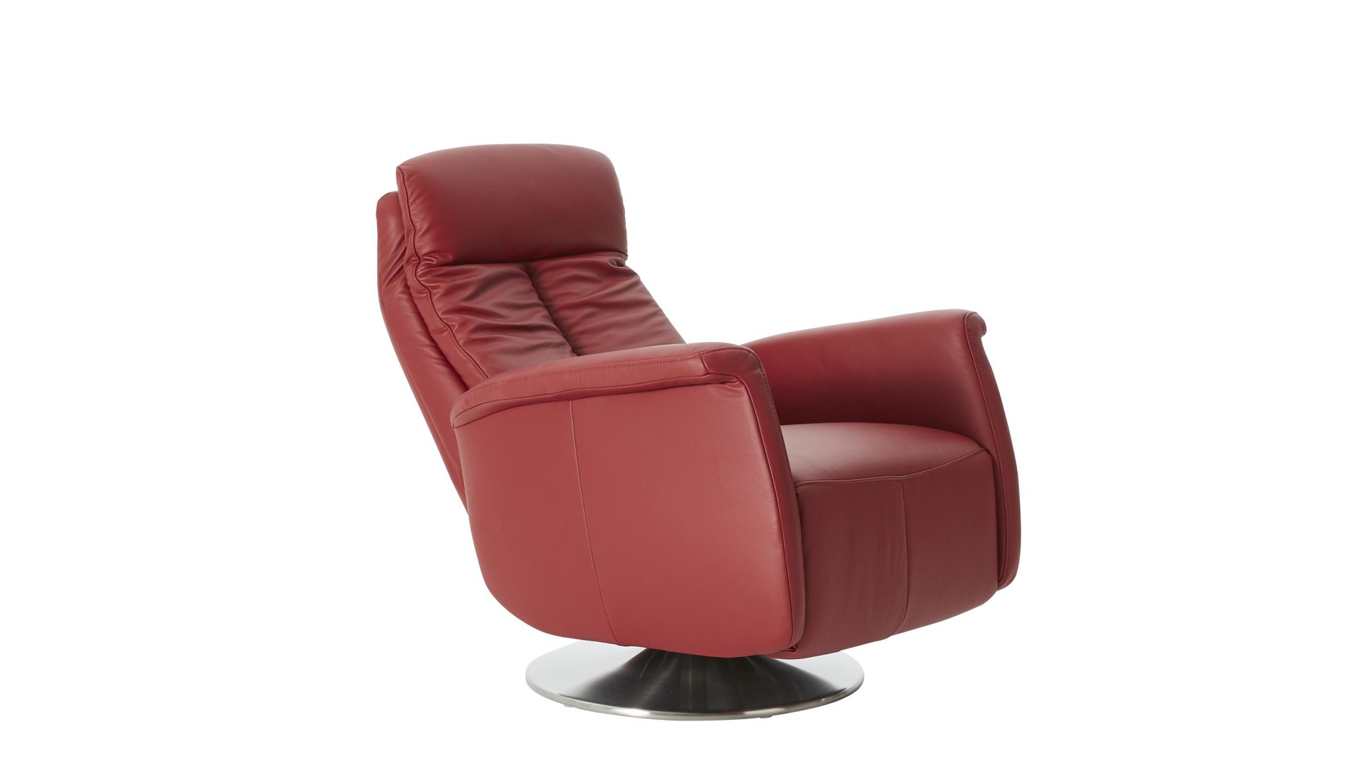 Der Modulmaster Relaxsessel MM-PN1035 kombiniert einen Edelstahl-Tellerfuß mit einem rossofarben pigmentierten Lederbezug auf der Rückenlehne D und der Armlehnvariante 2. Er strahlt intensive Eleganz aus und bringt warmes, einladendes Flair ins Wohnzimmer. Durch die erstklassigen, hervorragend verarbeiteten Materialien ist der modern designte Sessel robust und stabil, pflegeleicht und bei sorgsamer Behandlung besonders langlebig.