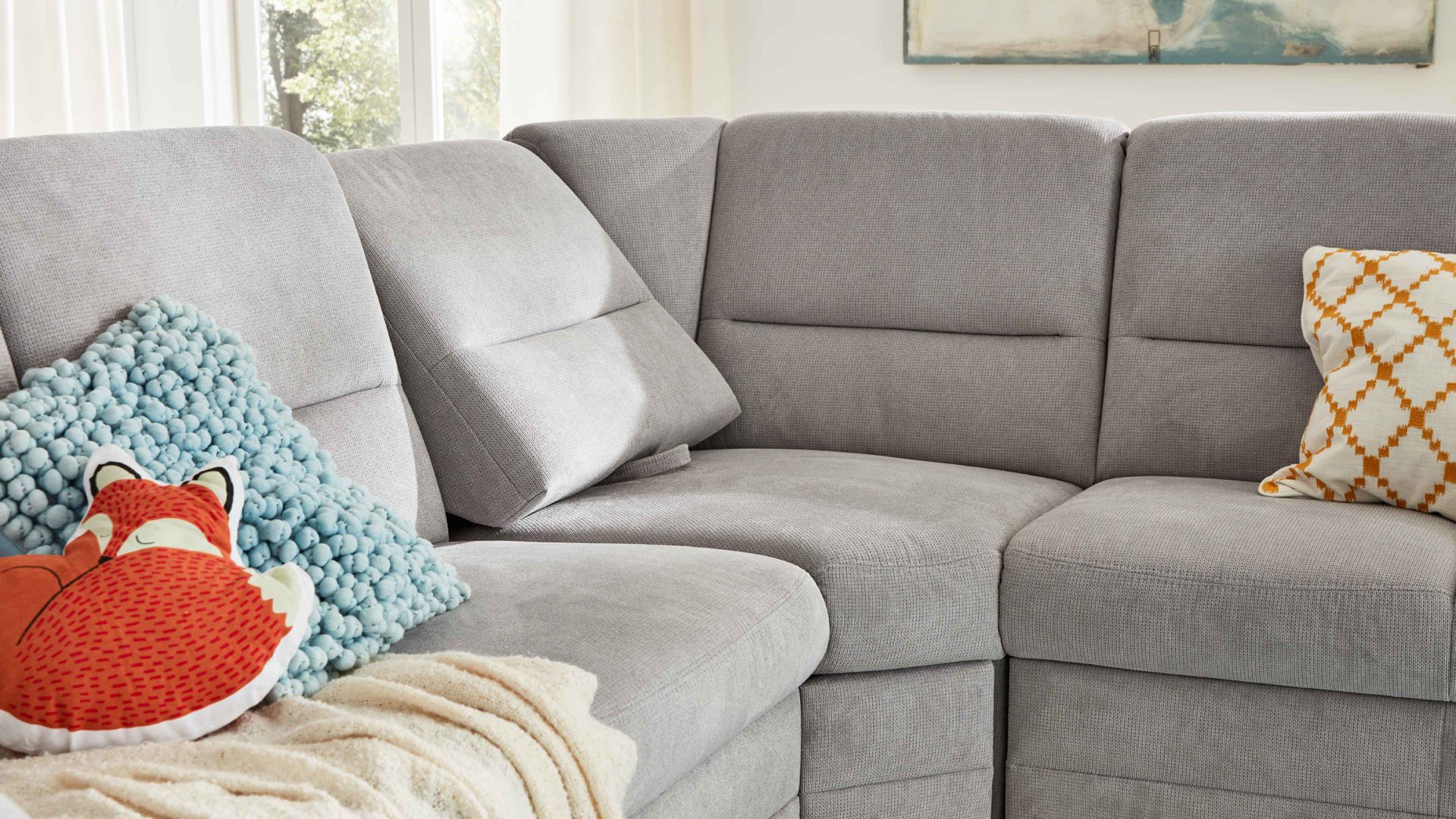 Der Relaxrücken ist ein komfortabler Funktions-Mehrpreis für Eckelemente aus dem Modulmaster-Polsterprogramm MM-PP1013. Es handelt sich um eine manuelle Relaxfunktion für beide Seiten des jeweiligen Elements. Indem Sie die Rückenlehne mit der Schlaufe leicht nach oben und vorn ziehen, stellen Sie den Neigungswinkel schräg zur Relaxposition.